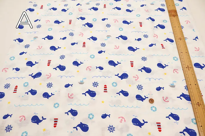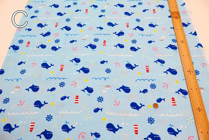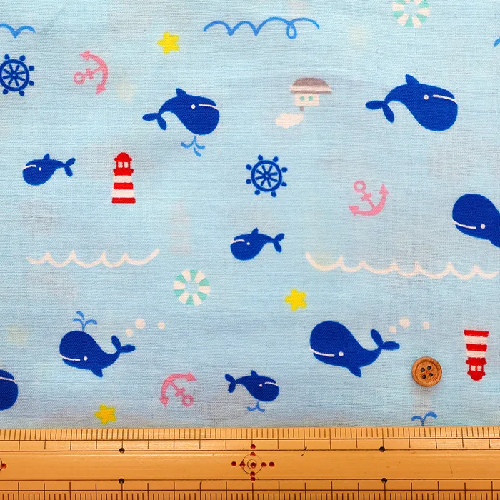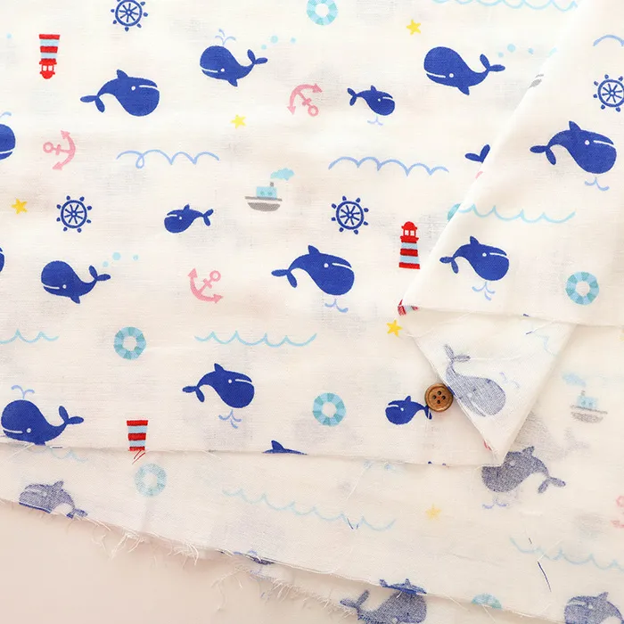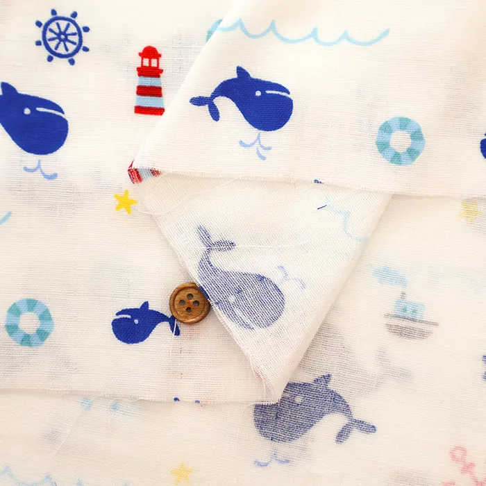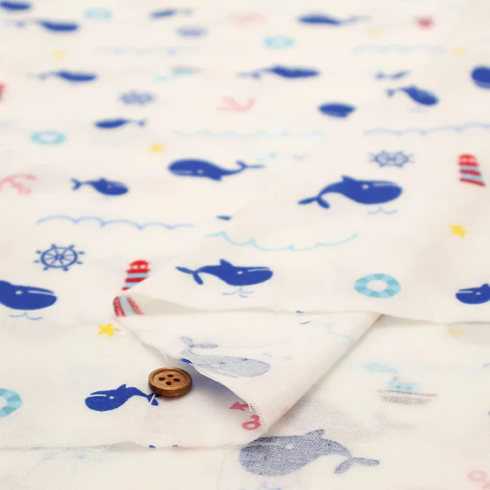 コットンダブルガーゼプリント生地 くじら