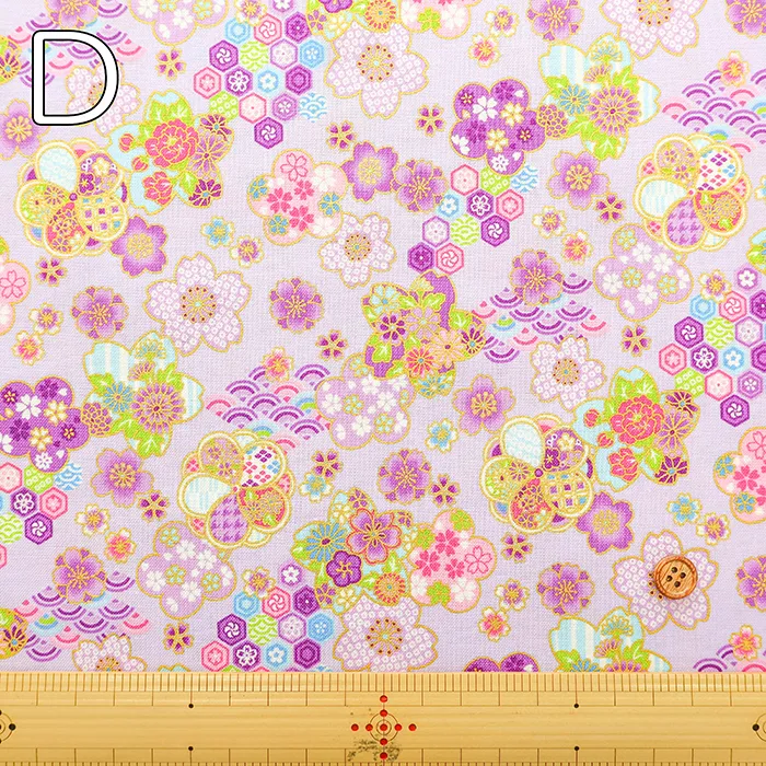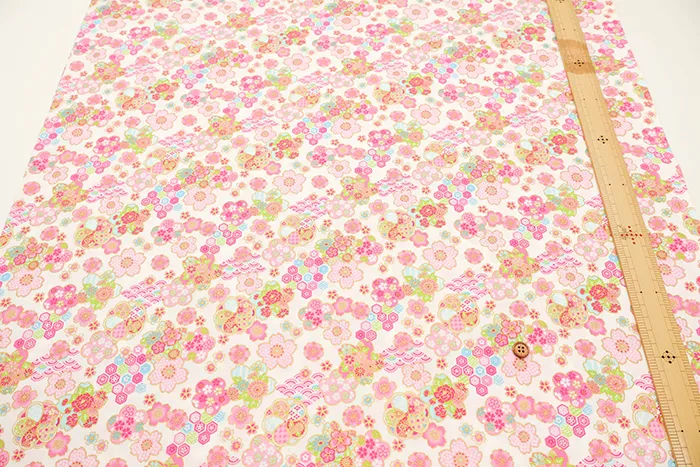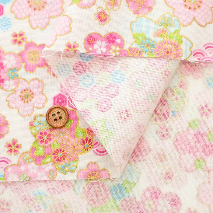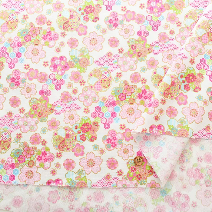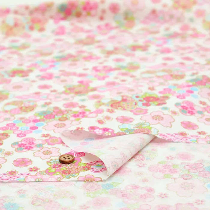 コットンシーチングラメプリント生地 桜