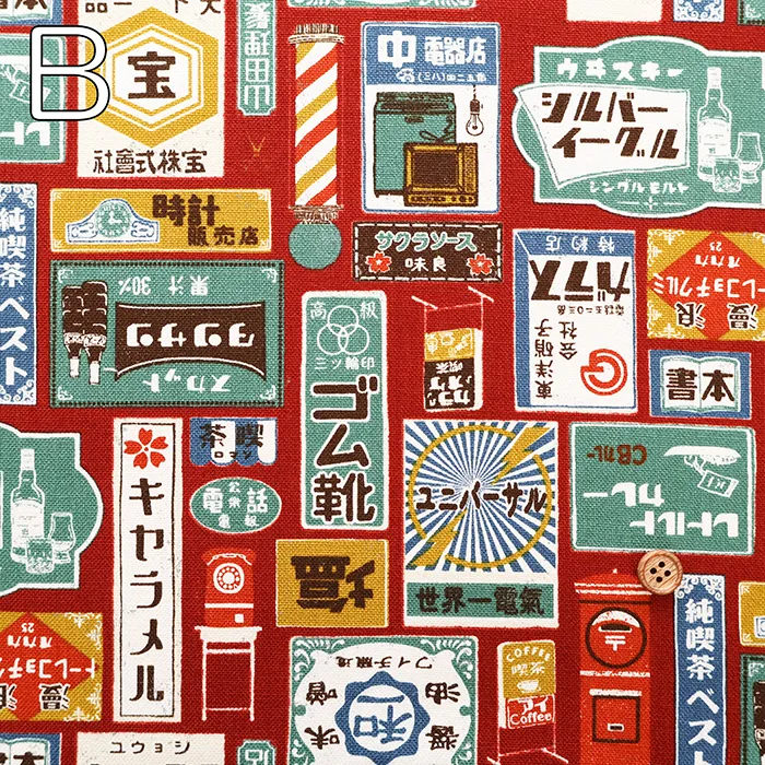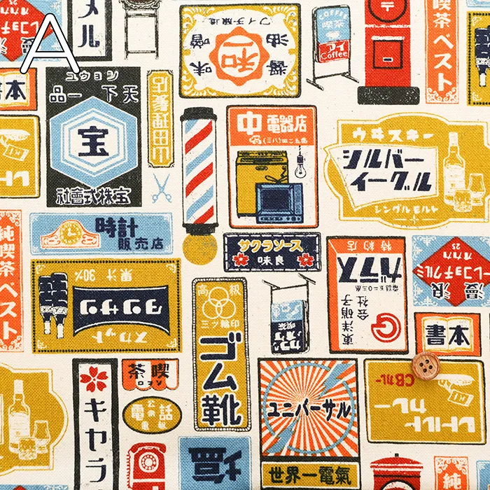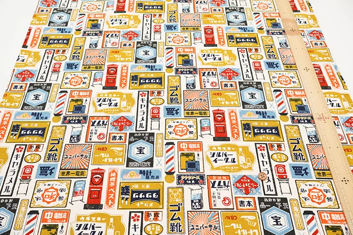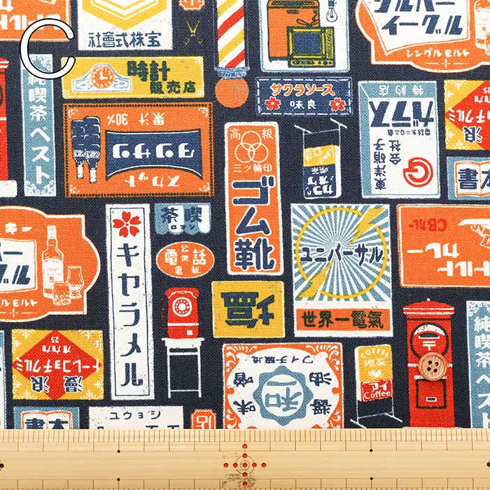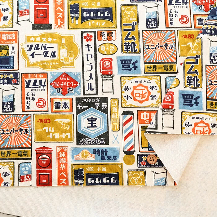 コットン11号帆布プリント生地 レトロ看板