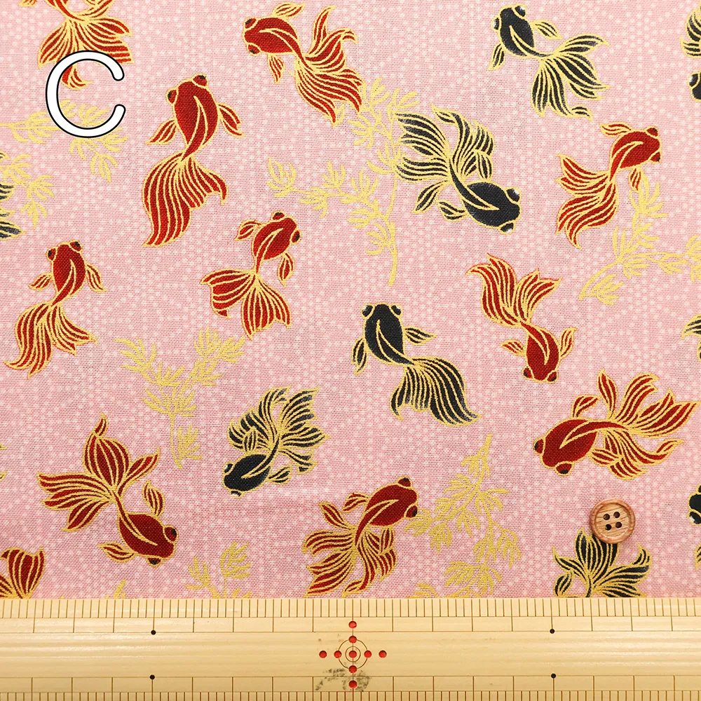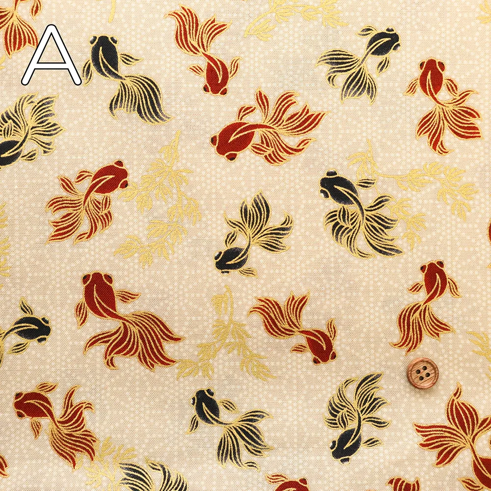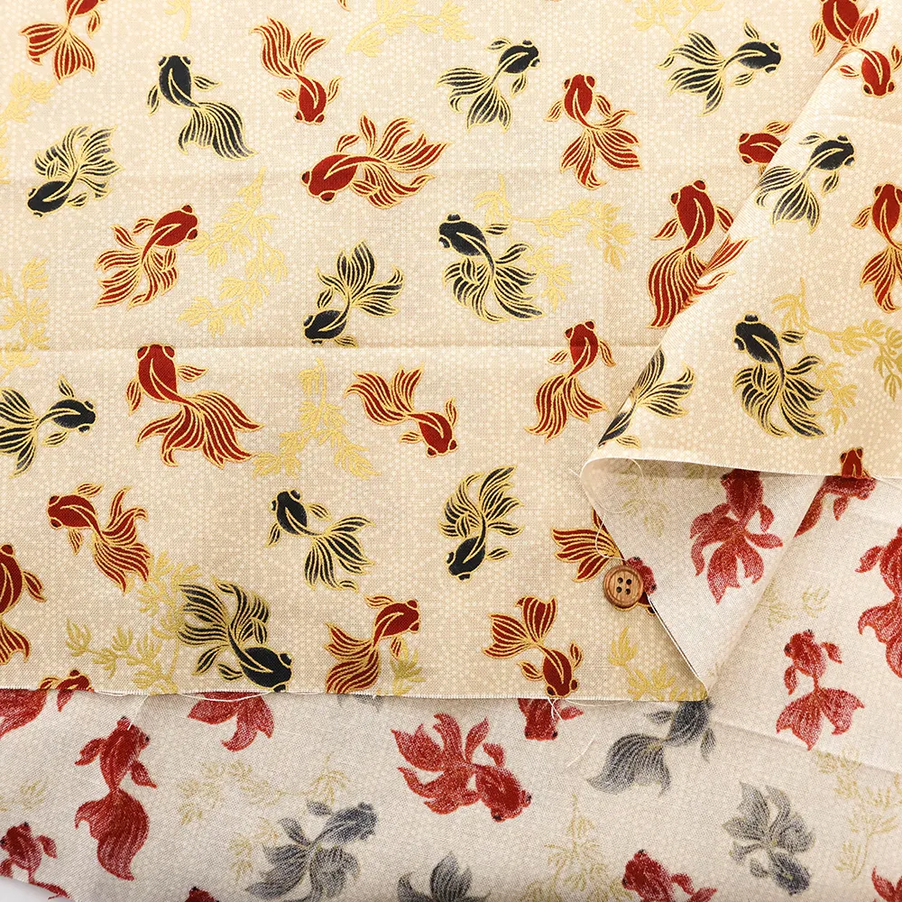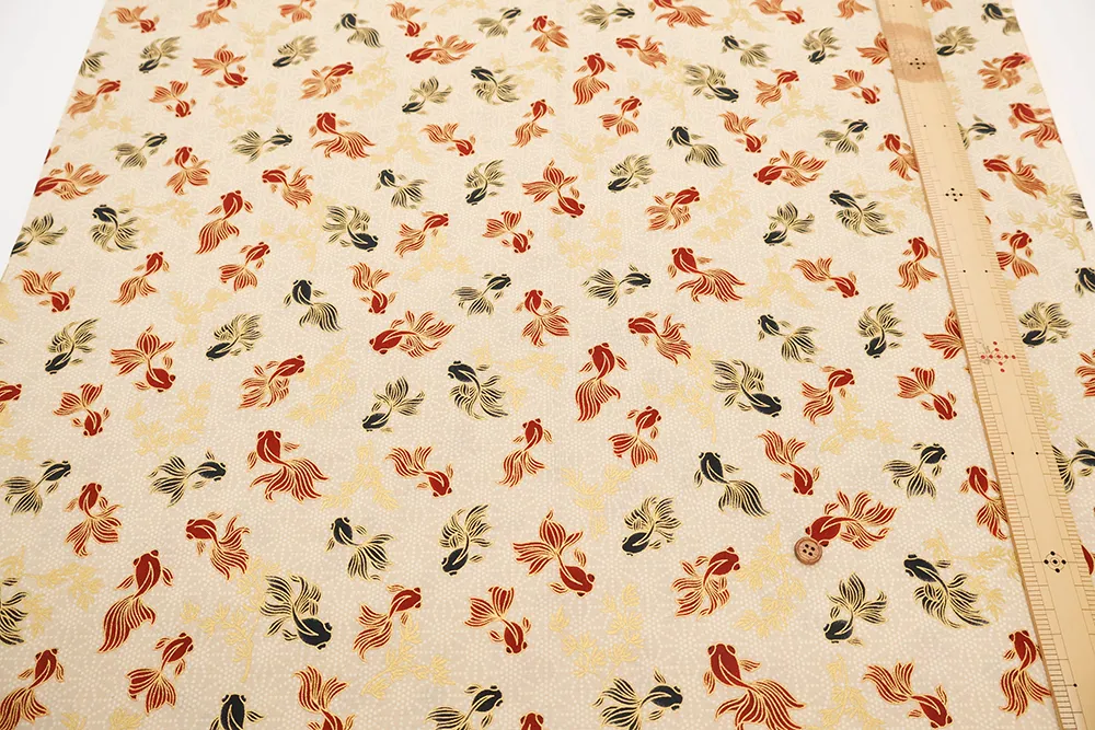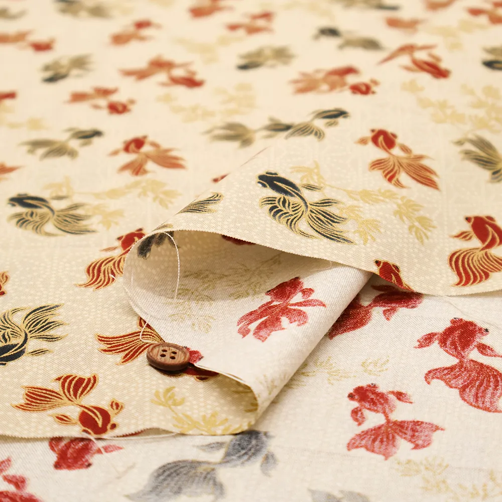 コットンシーチングプリント生地 百華繚蘭 金魚