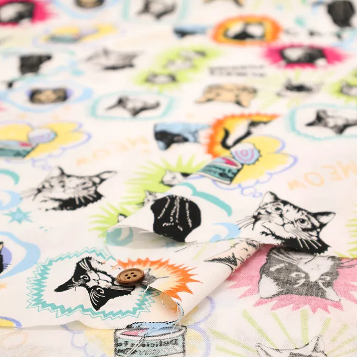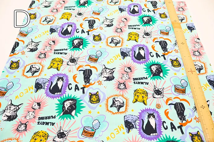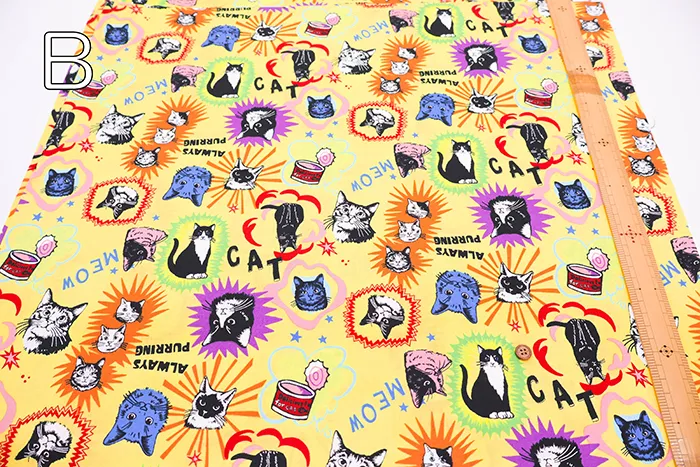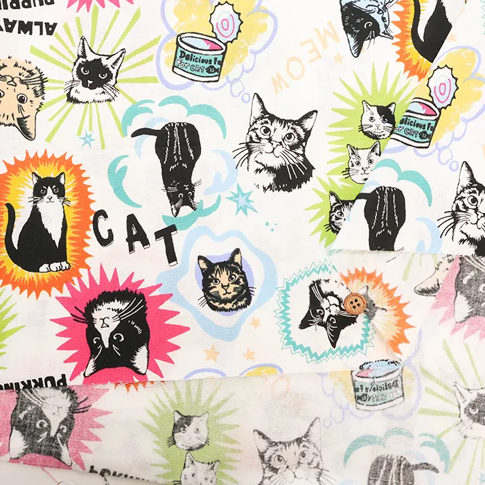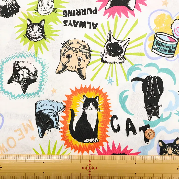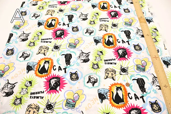 コットンシーチングプリント生地 un/no IN THE POP WORLD キャット