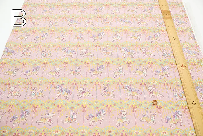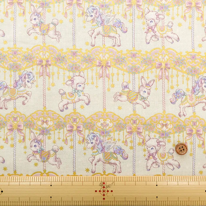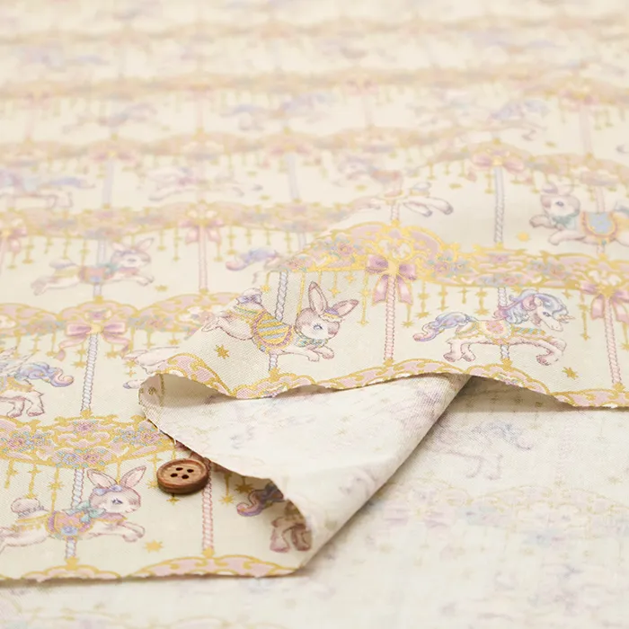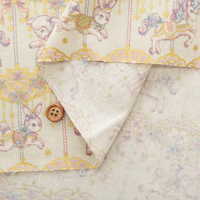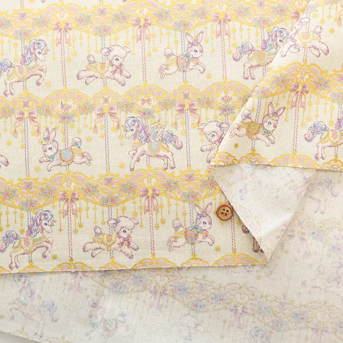 コットンシーチングラメプリント生地 un/no メリーゴーランド