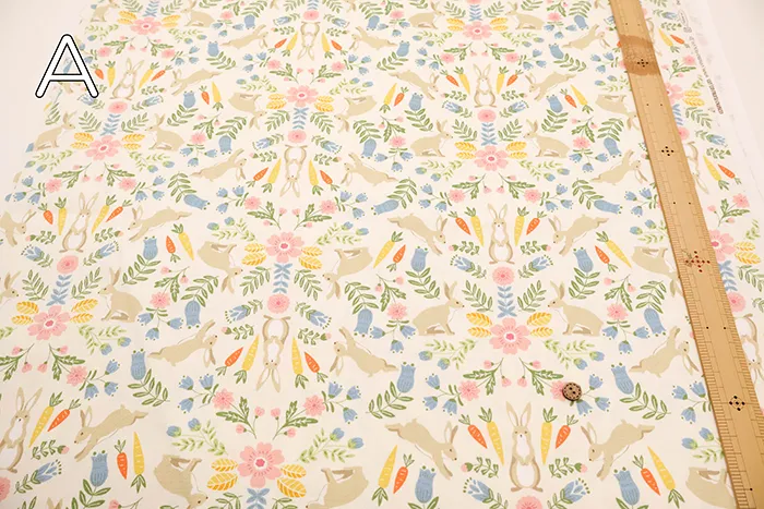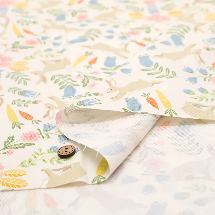 コットンオックスプリント生地 ウサギ