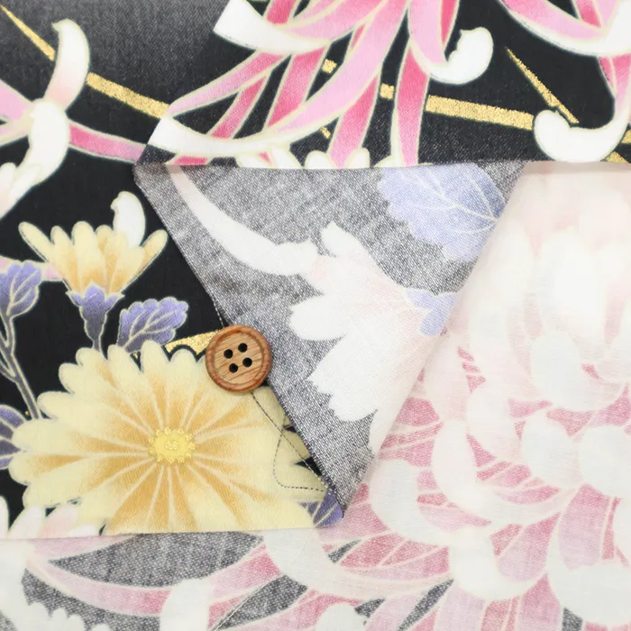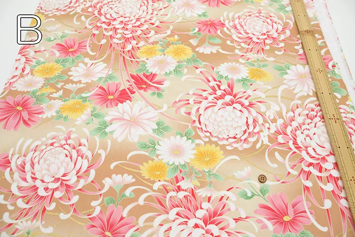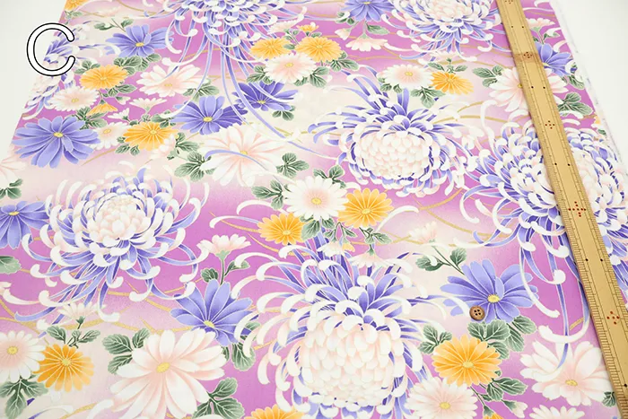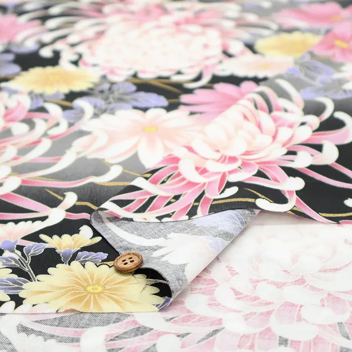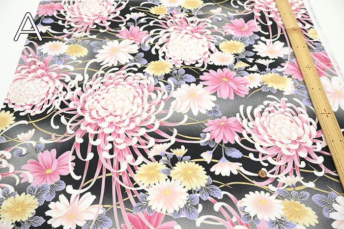 コットンサテンラメプリント生地 菊