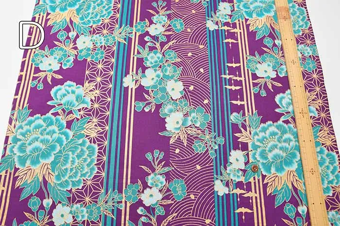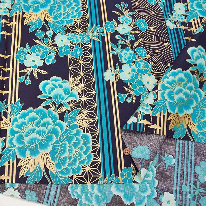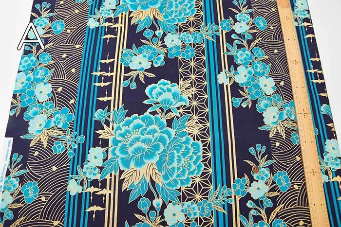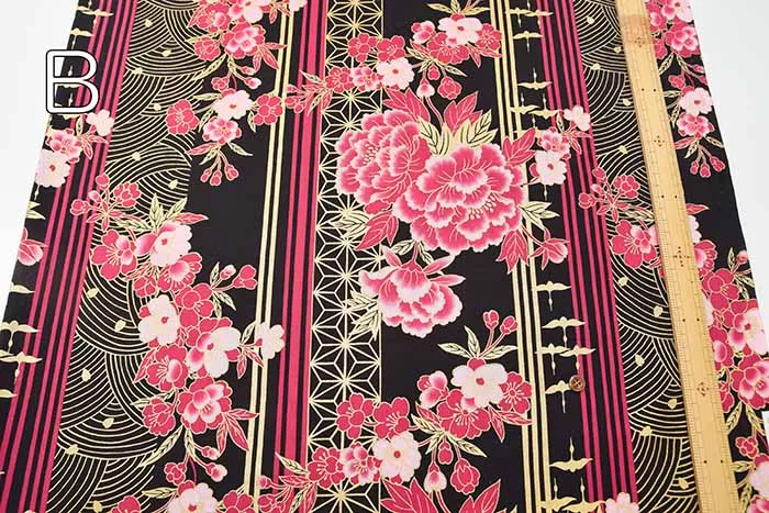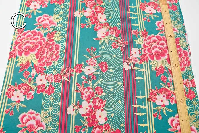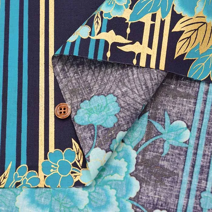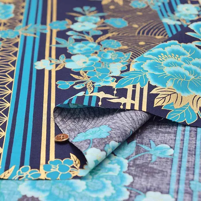 コットンシーチングラメプリント生地 花とストライプ