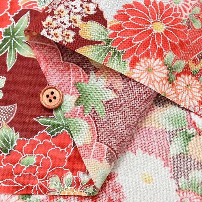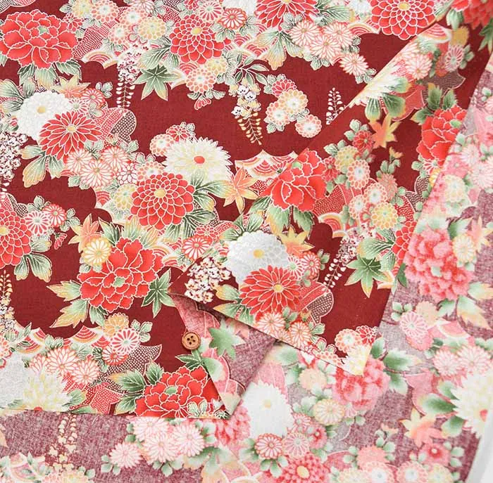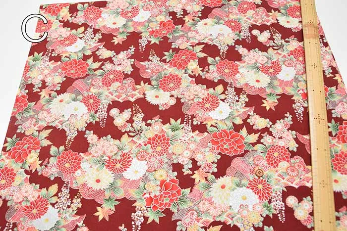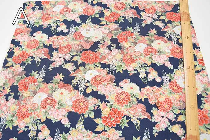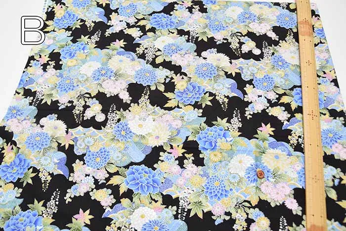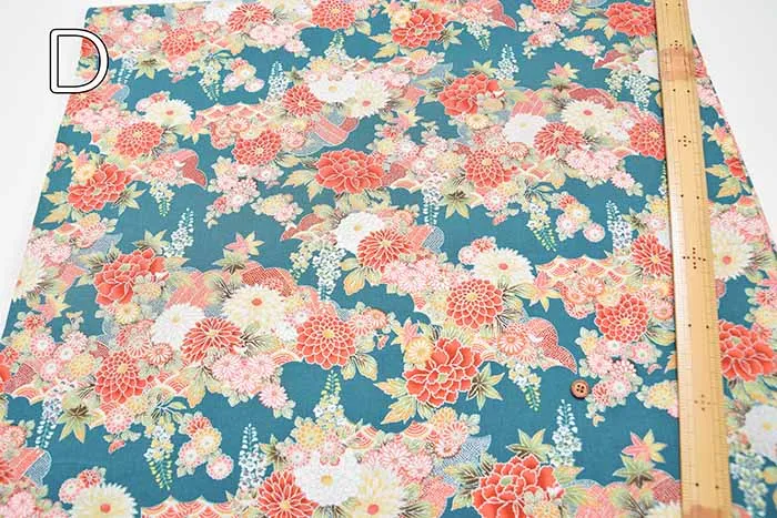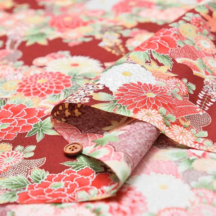 コットンシーチングシルバーラメプリント生地 和菊