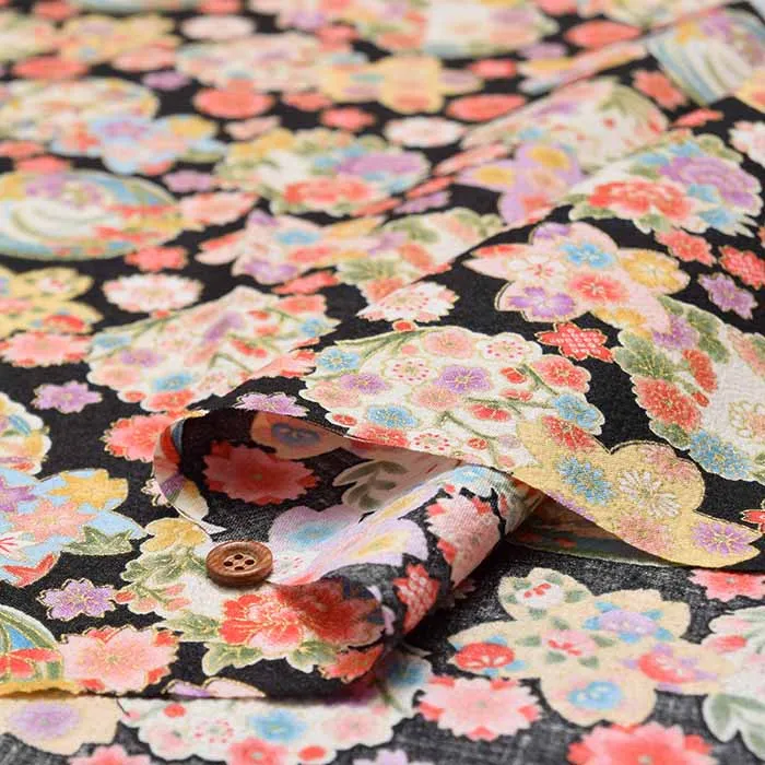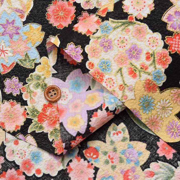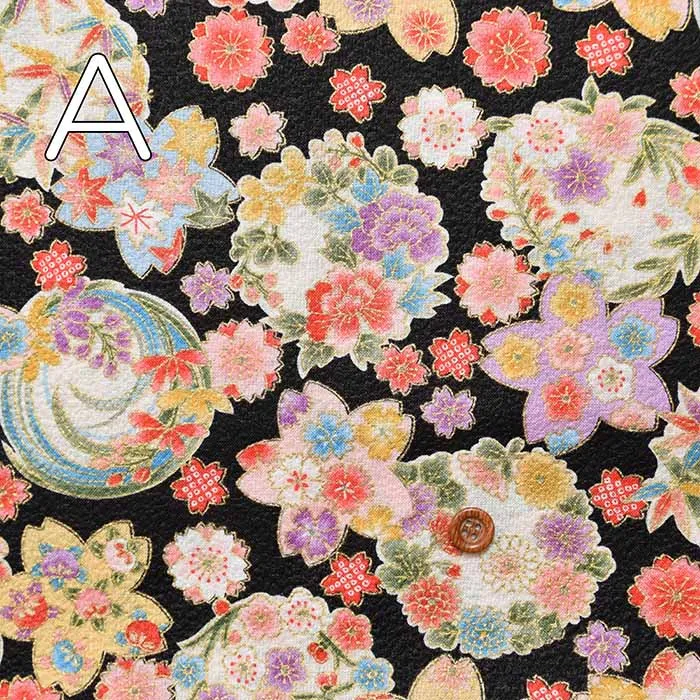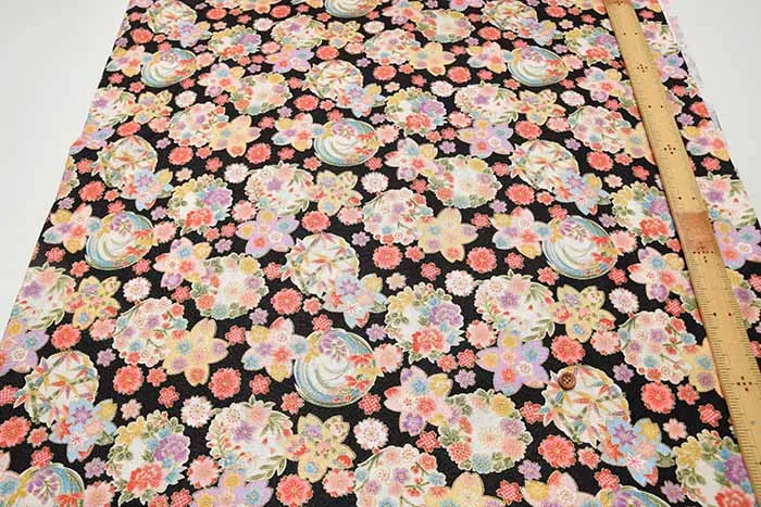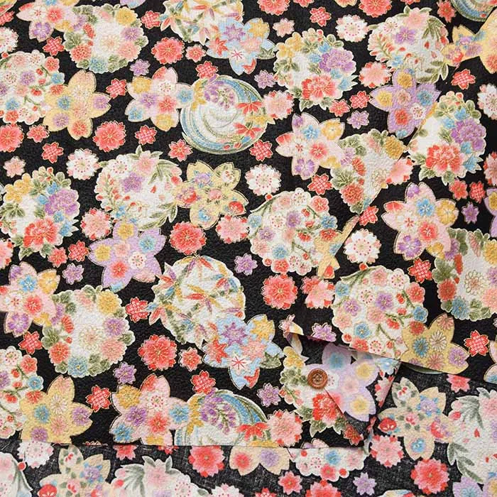 コットンスケアエンボス和柄プリント生地 華