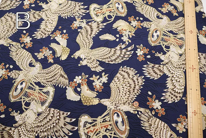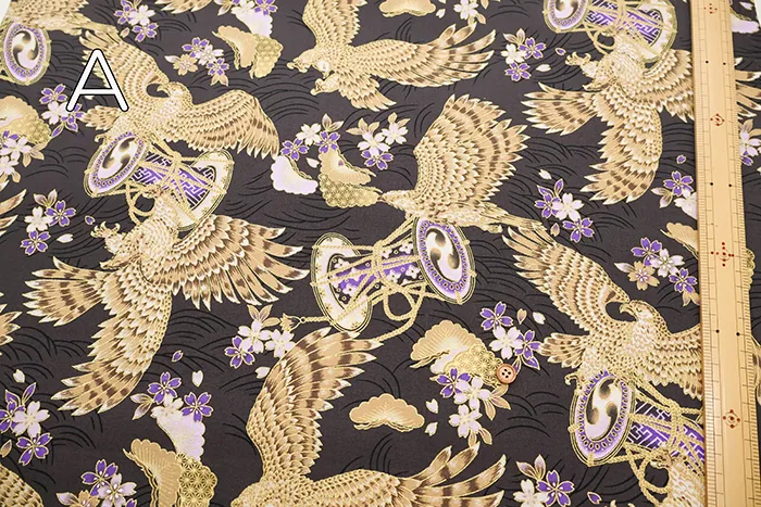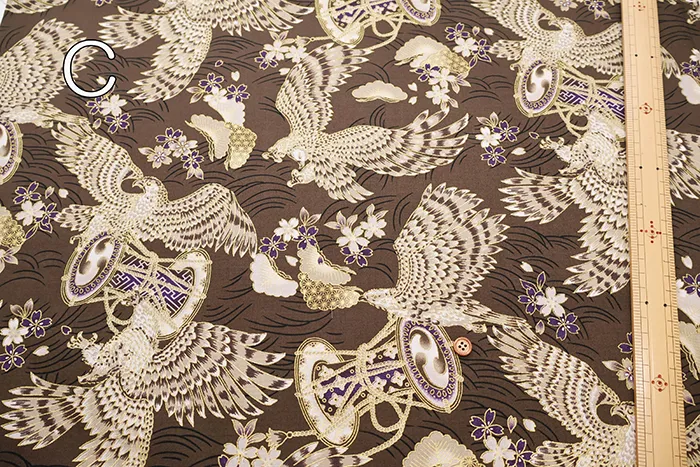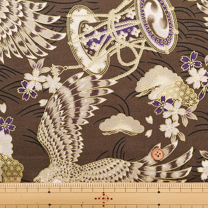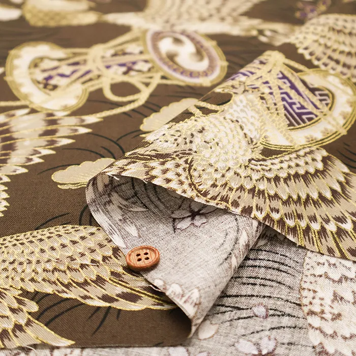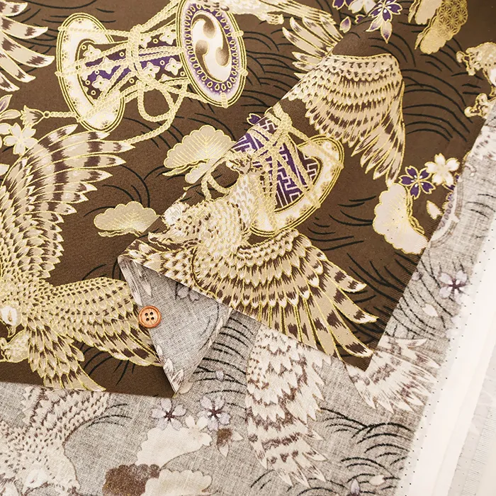 コットンシーチングラメプリント生地 鷹