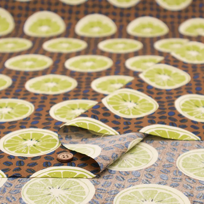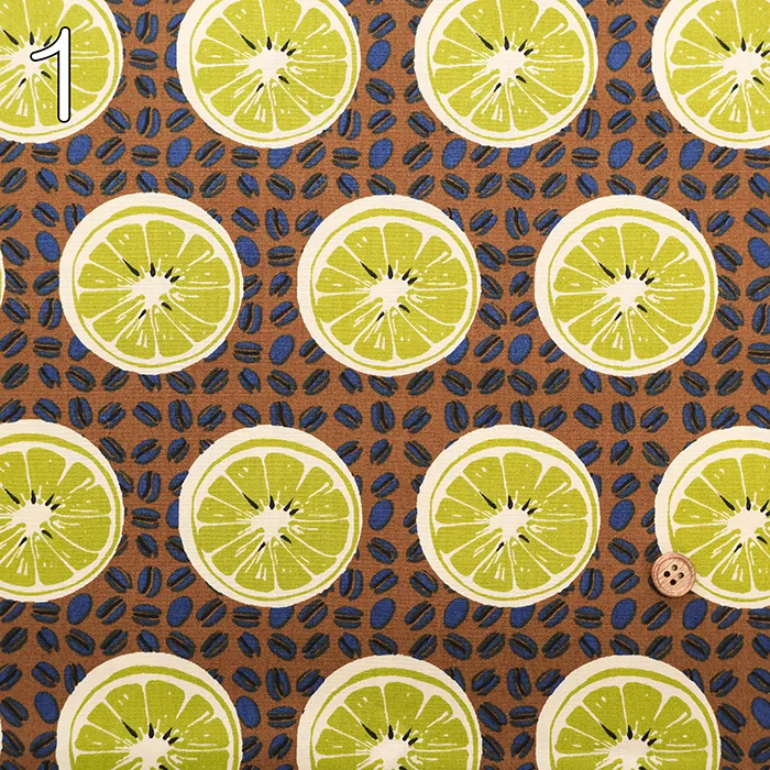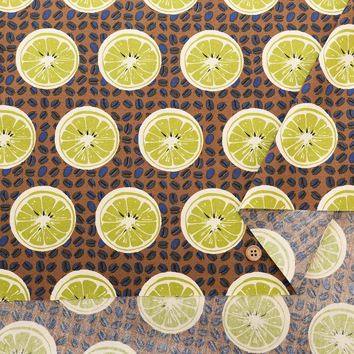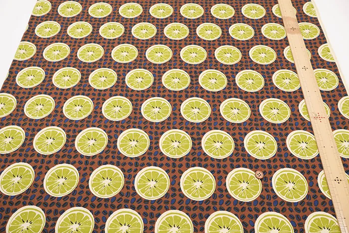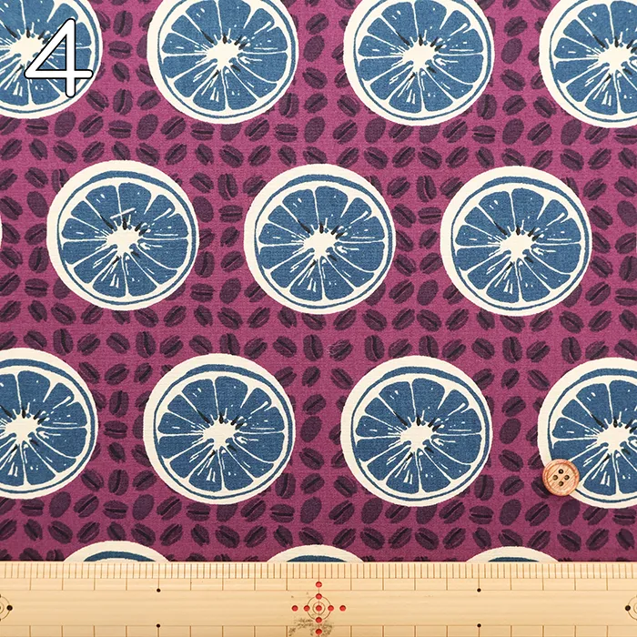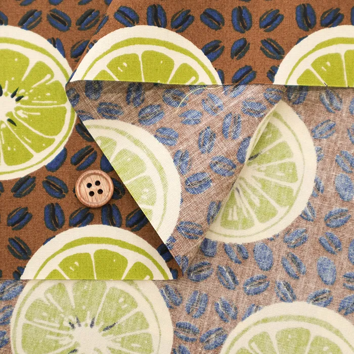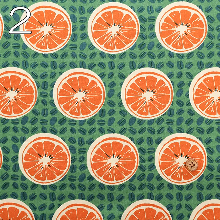 コットンブロードプリント生地 オレンジとコーヒー豆