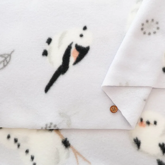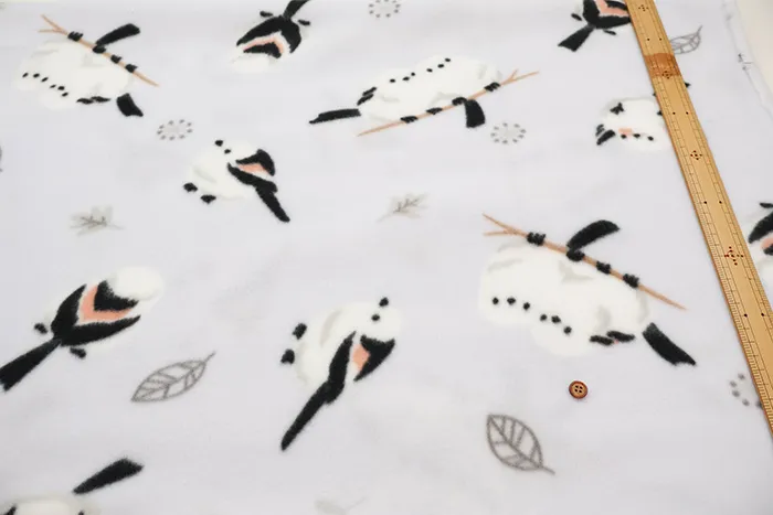中国製 ポリエステルフリースプリント生地 シマエナガ