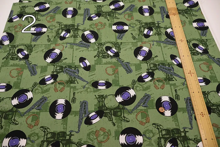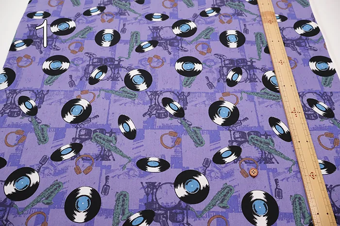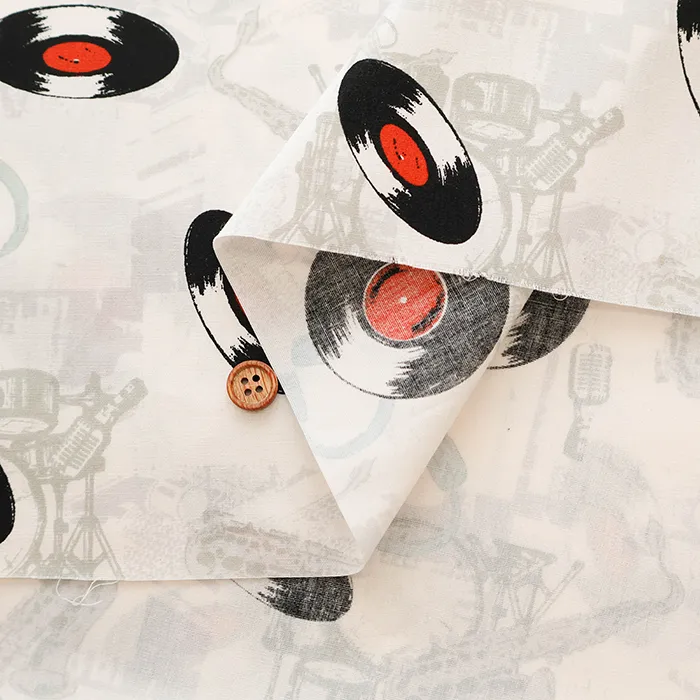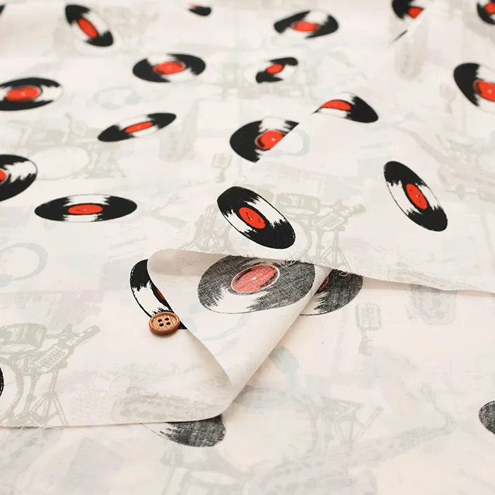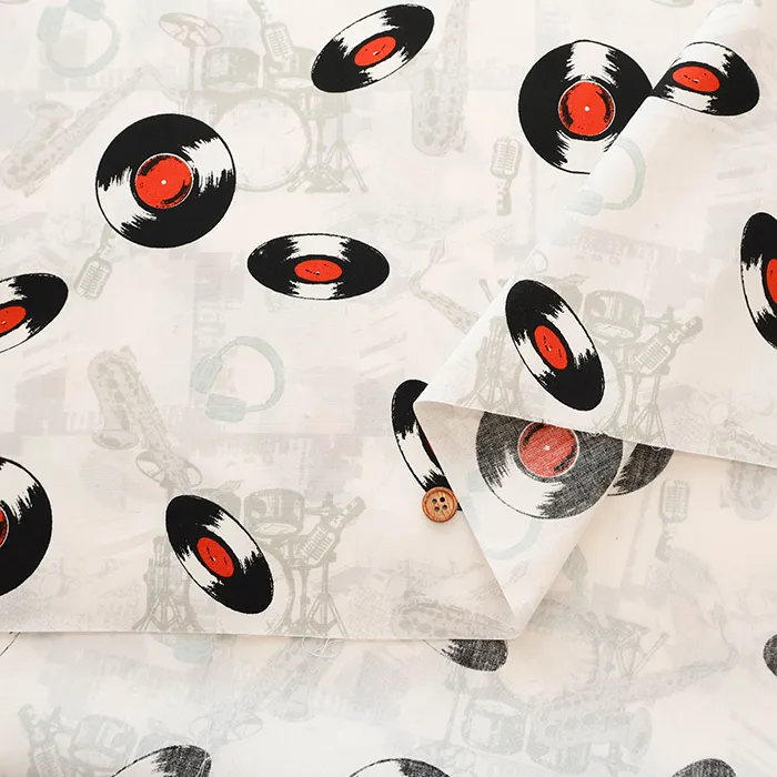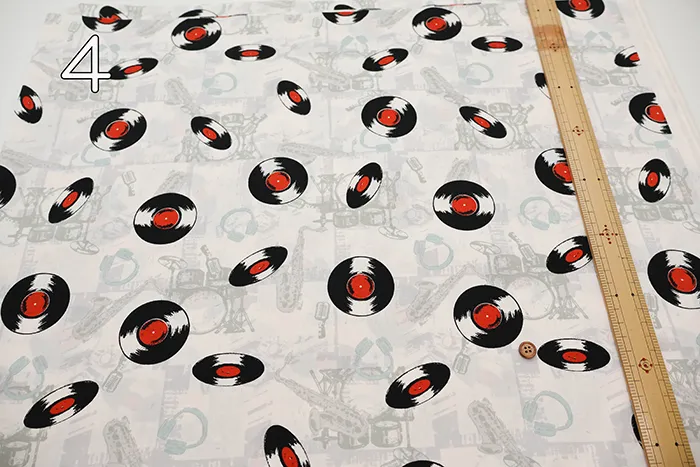 コットンブロードプリント生地 アメリカンヴィンテージレコード