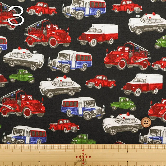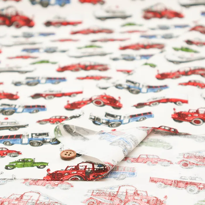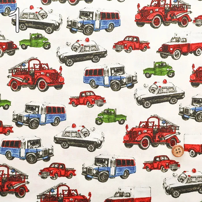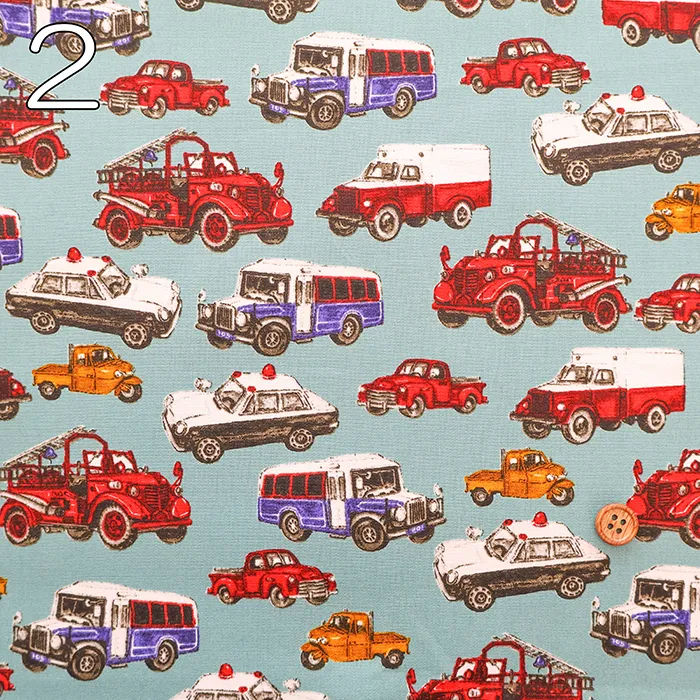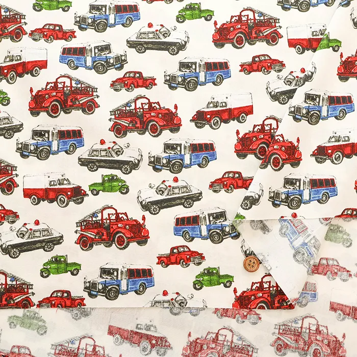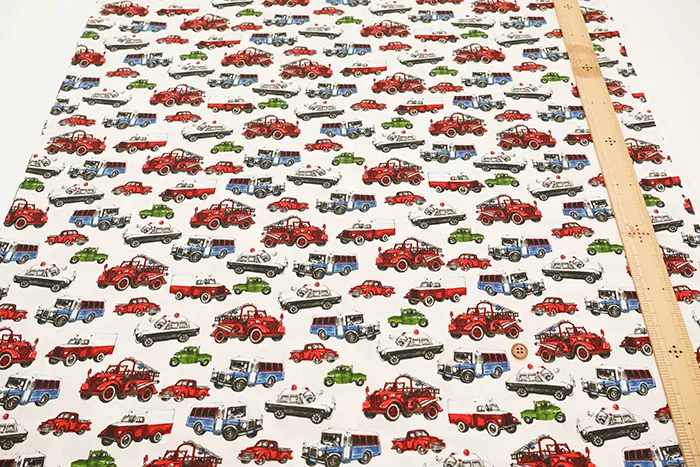 コットンブロードプリント生地 ワーキングカー