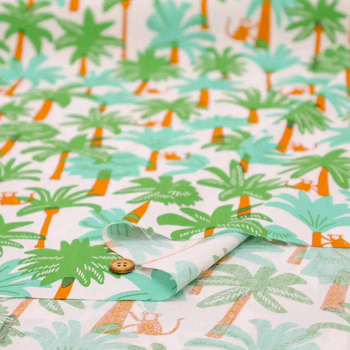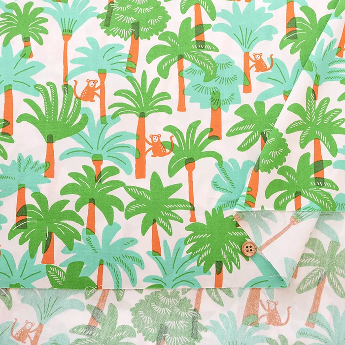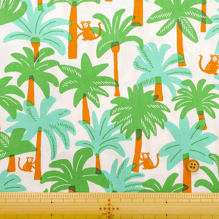 コットンブロードプリント生地 南国モンキー