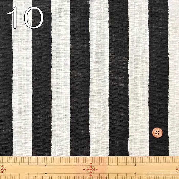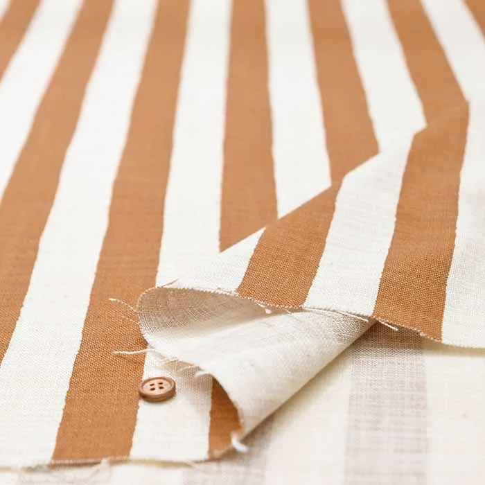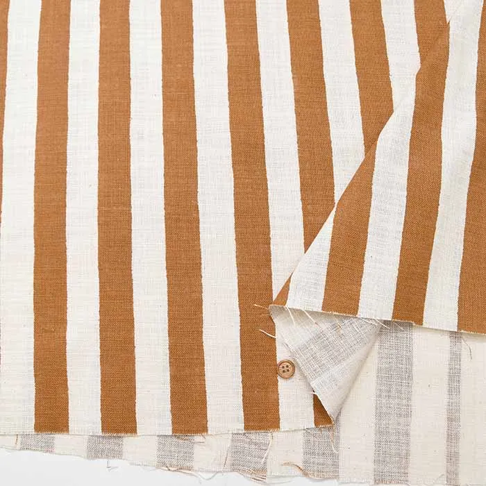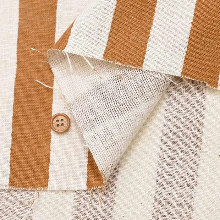 コットン リネンライクスラブプリント生地 ストライプ