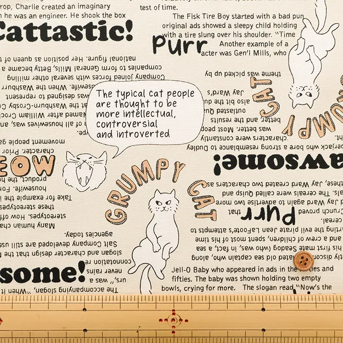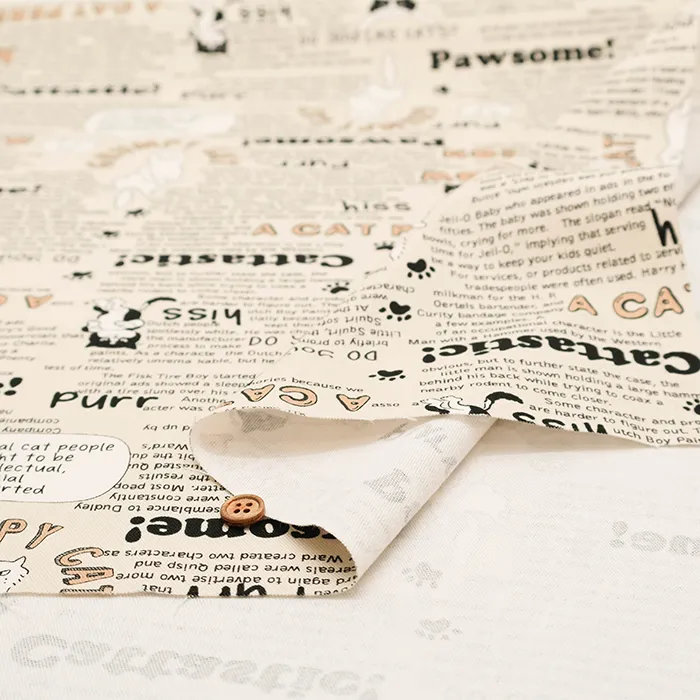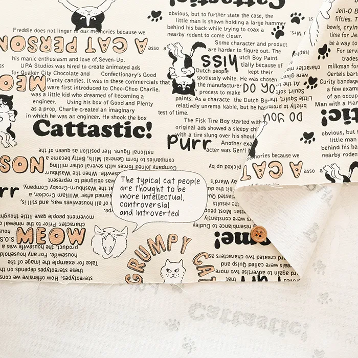 コットンオックスプリント生地 ニャンコニュースペーパー