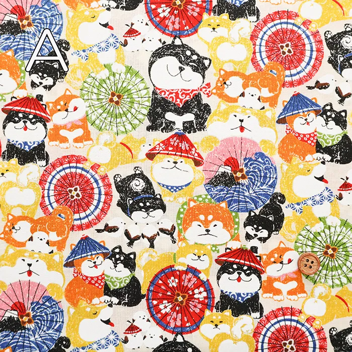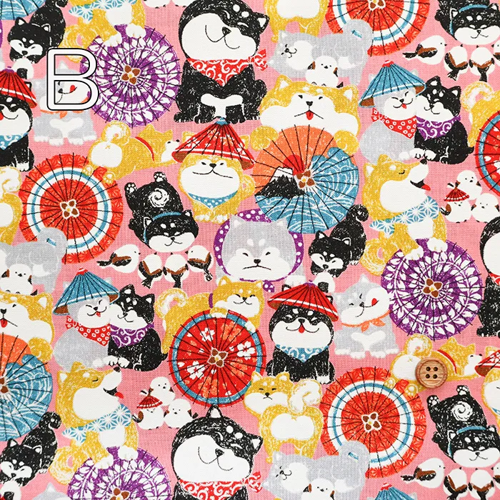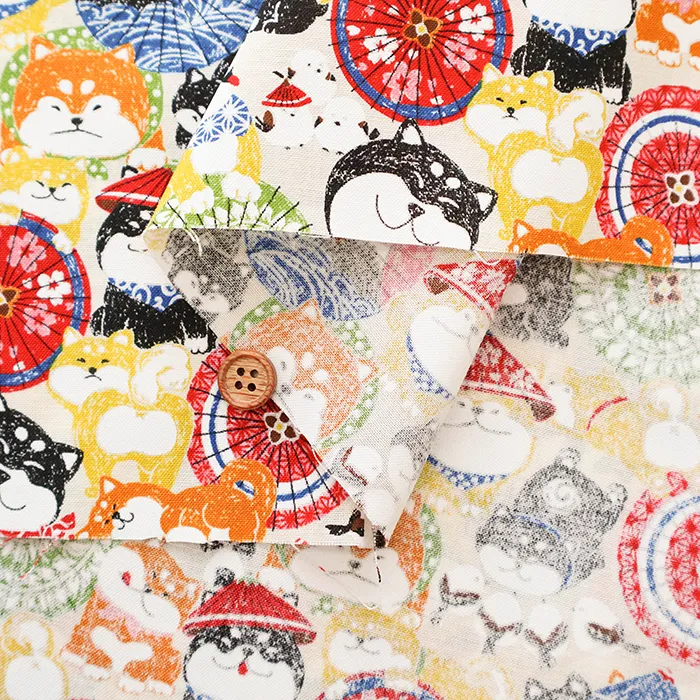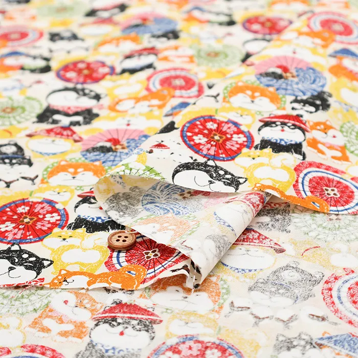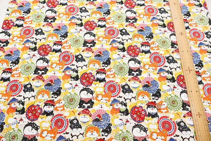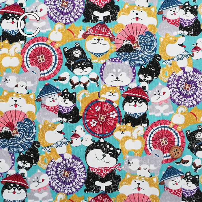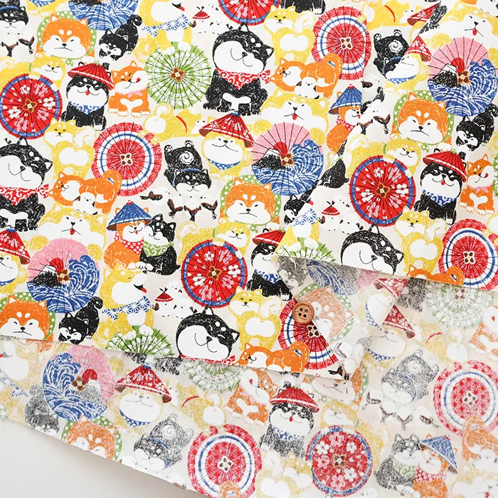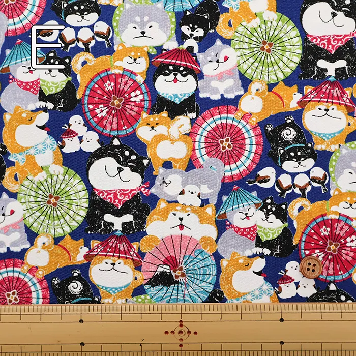 コットンスケアプリント生地 わんこだ和 ばんがさだわん