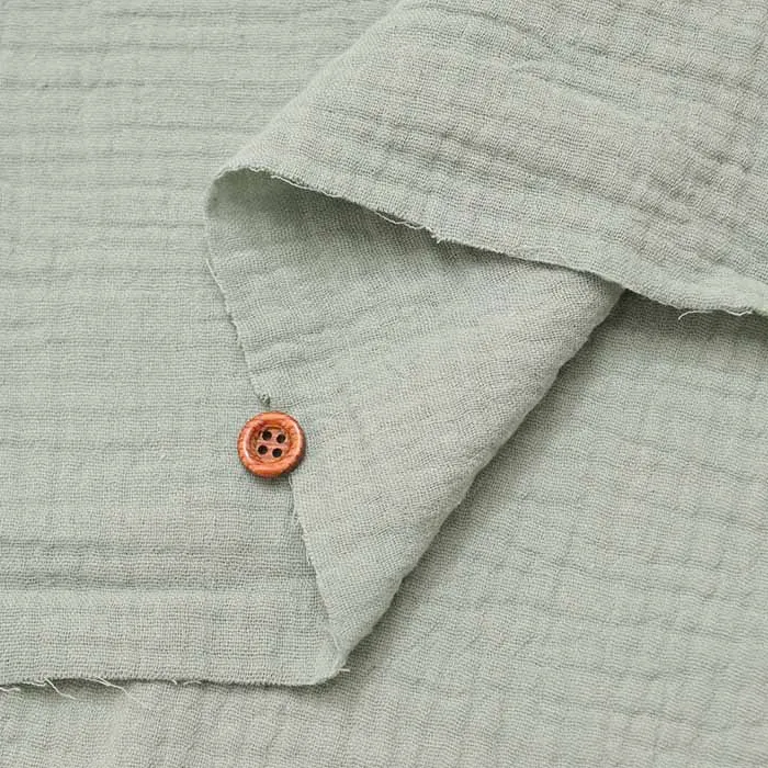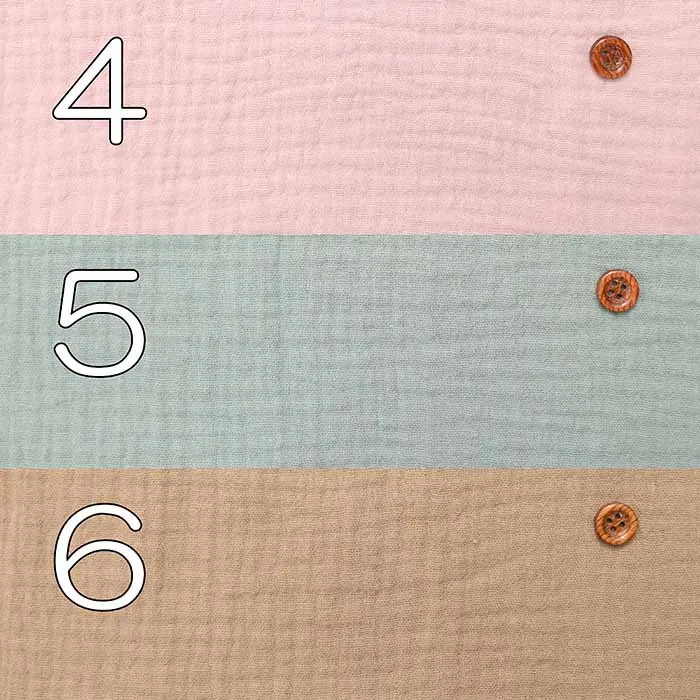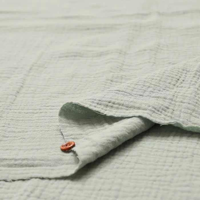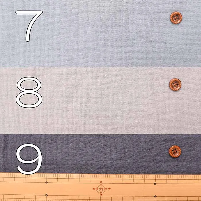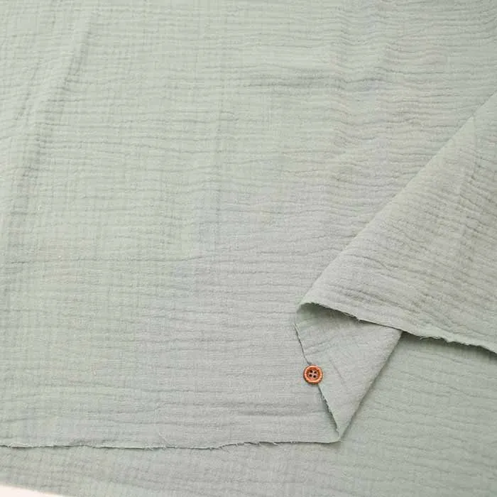 甘い撚りの糸を使った柔らかいガーゼ生地を二重にしたダブルガーゼ生地で、二重にすることで、よりふんわりと。透け感も抑えて衣類から雑貨用と様々な用途で使いやすい生地です。