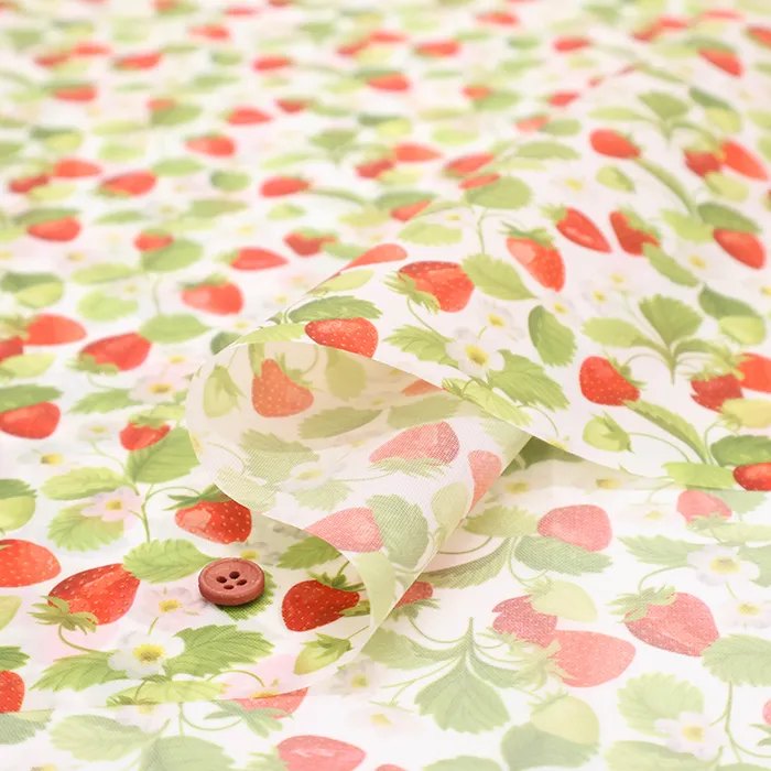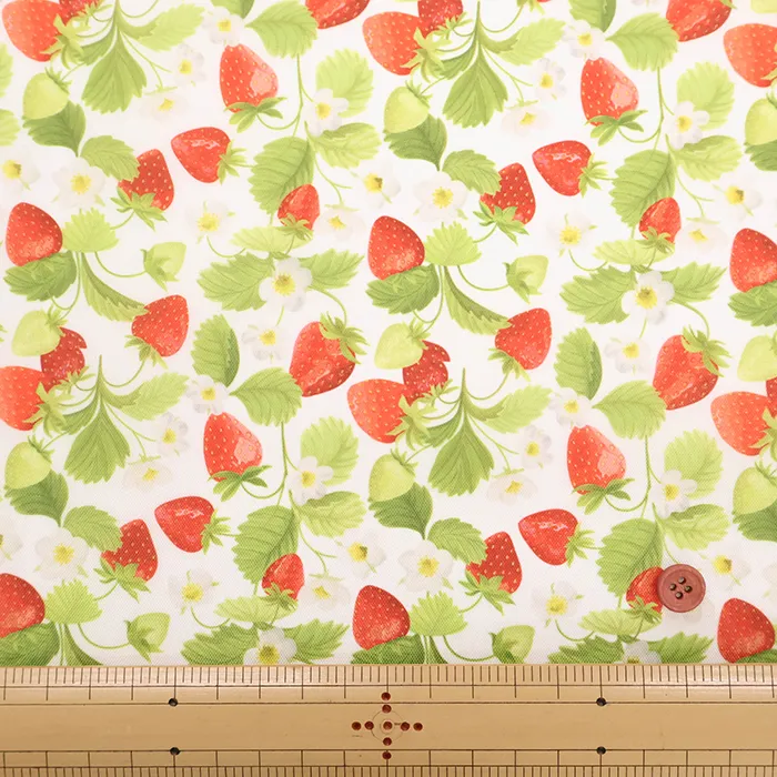 中国製 撥水加工 ポリエステルオックスプリント生地 イチゴ(2-036-hs2282-40)