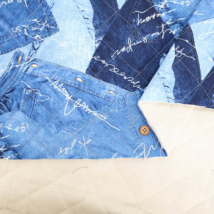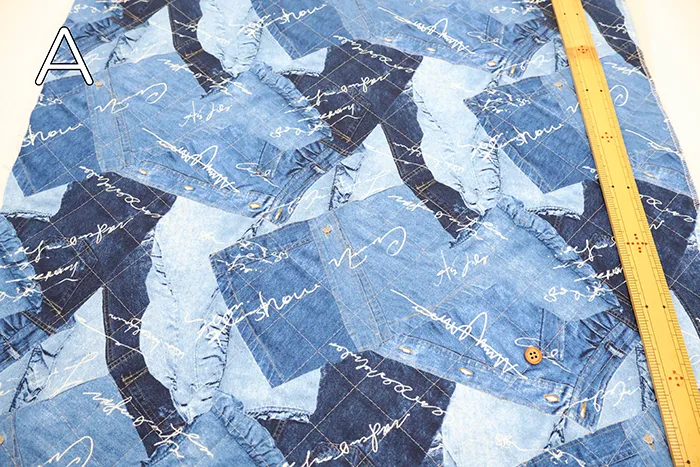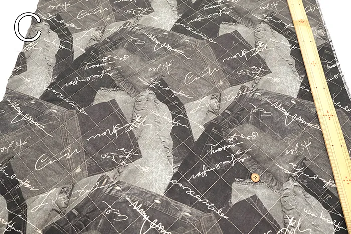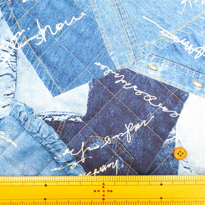 コットンオックスプリントキルト生地 デニム風(半針)