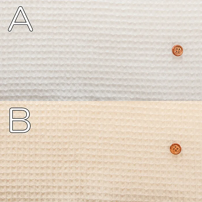 生地表面に蜂の巣状の凹凸を織り出した蜂巣織りの一種であるワッフル生地。