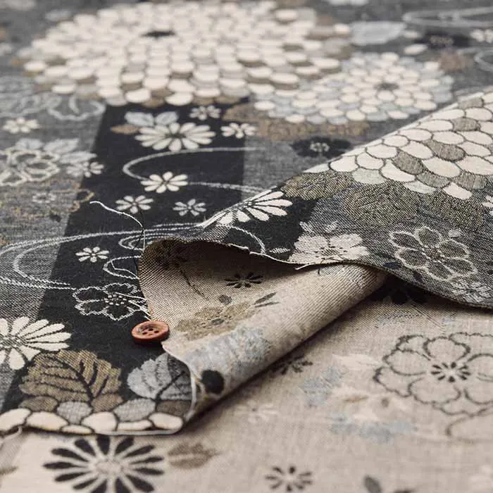 コットン二重織ジャガード生地 流水菊