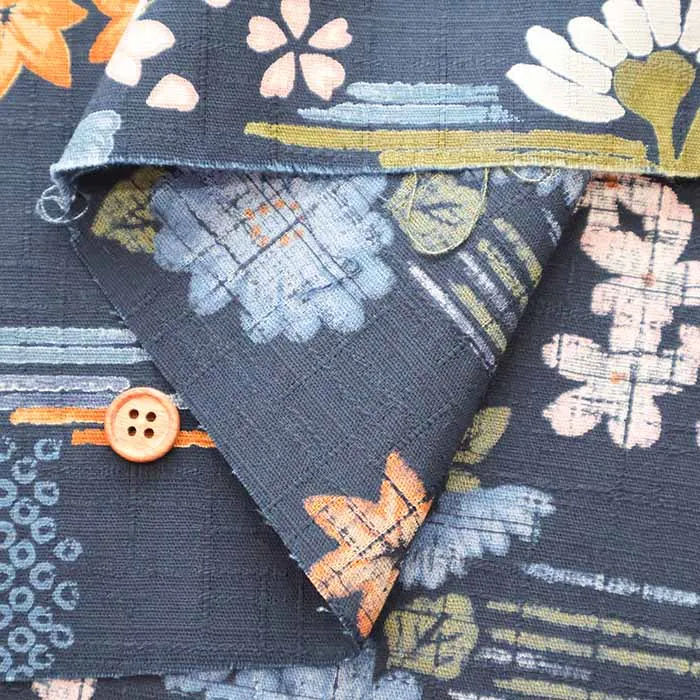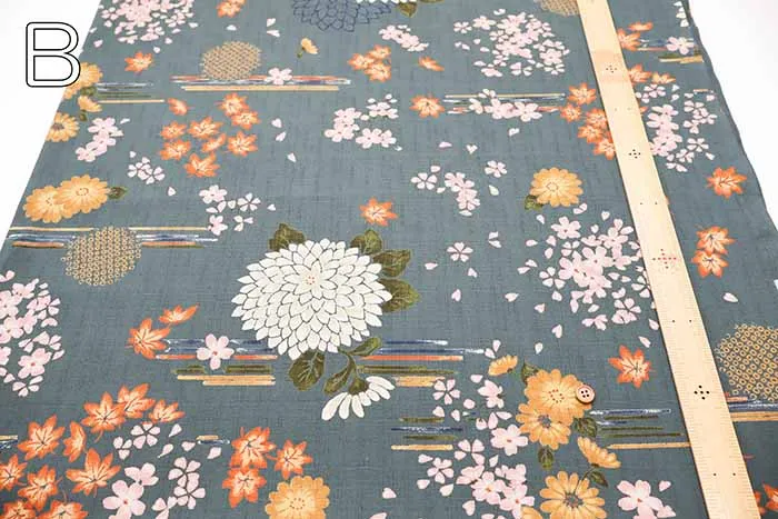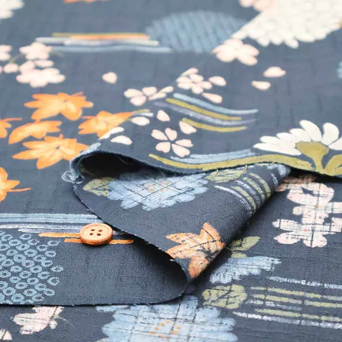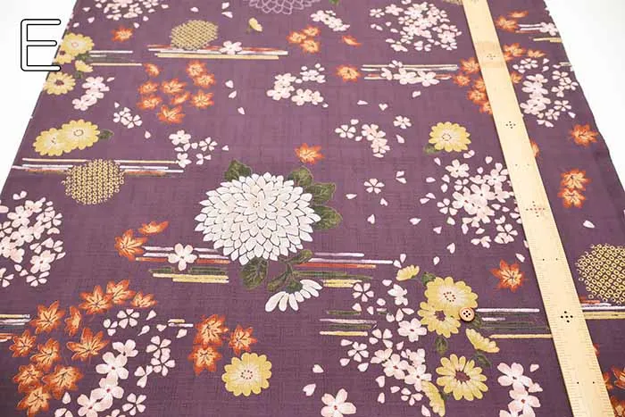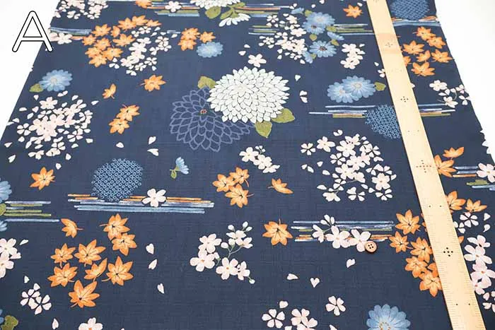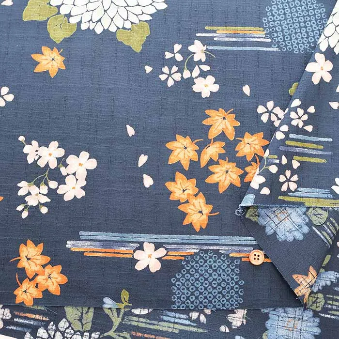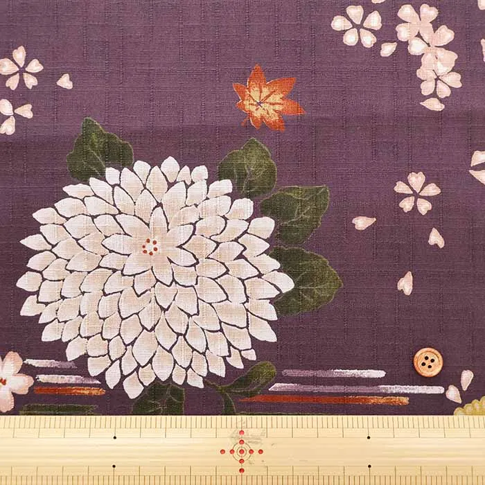 コットンサザンクロス抜染生地 菊花桜楓文様