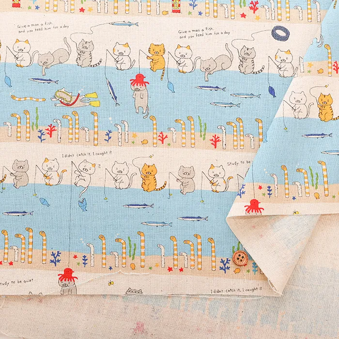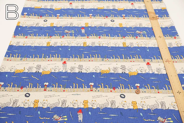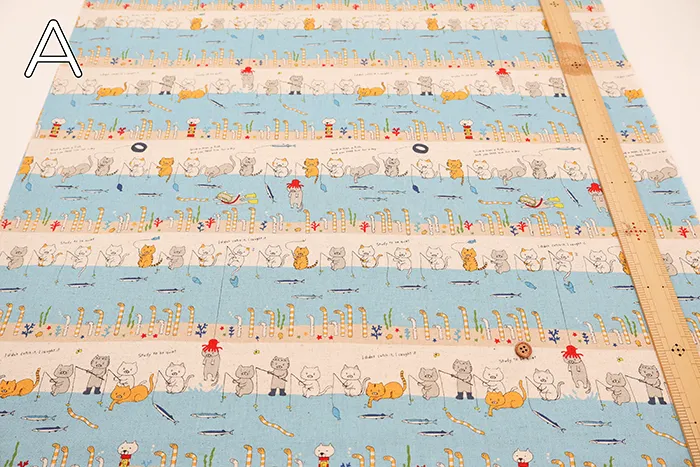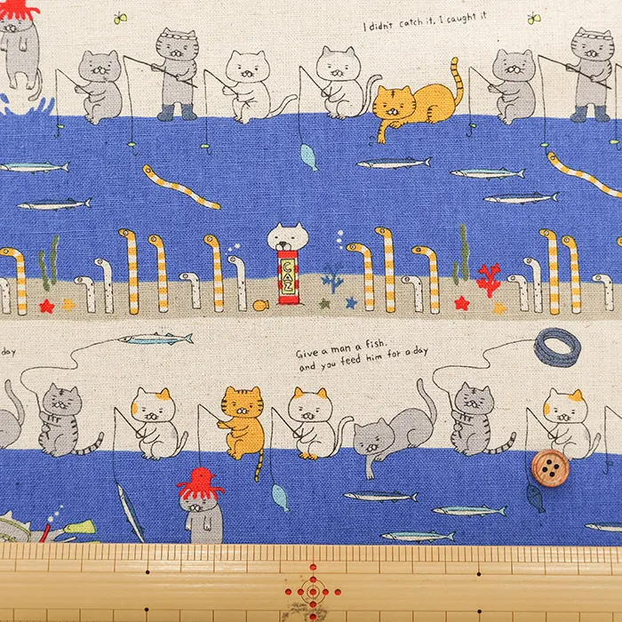 C/Lキャンバスプリント生地 釣り猫featチンアナゴ