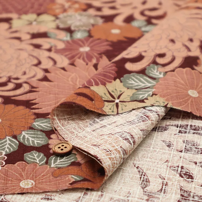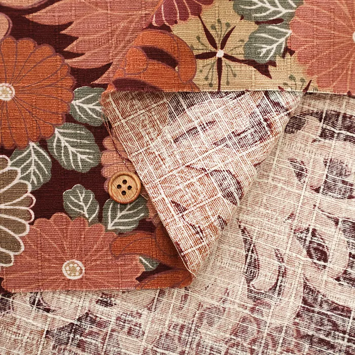 コットンサザンクロスプリント生地 型染花尽し文様