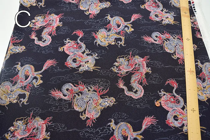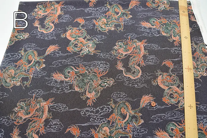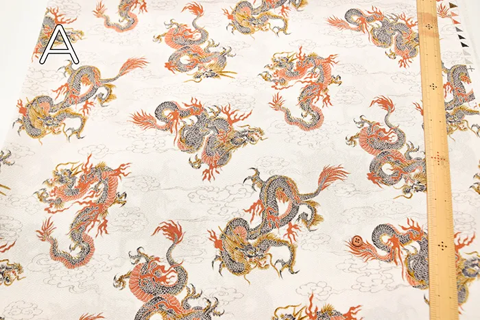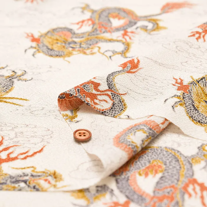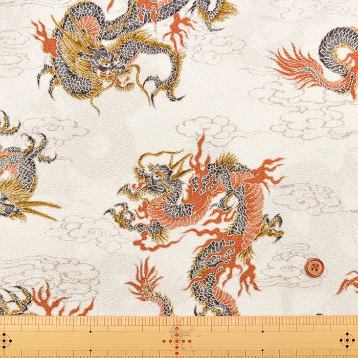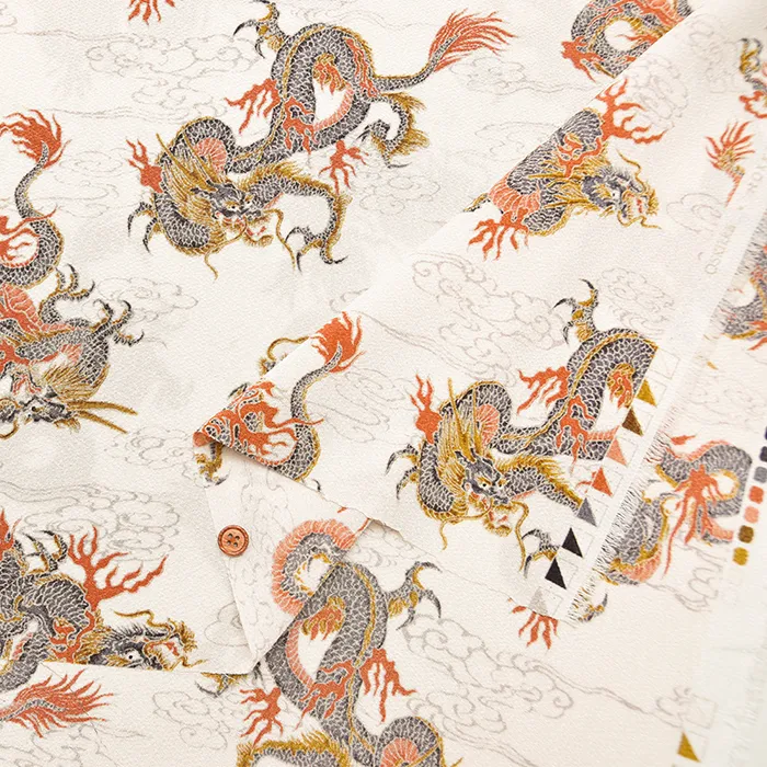 ポリエステルチリメンプリント生地 龍