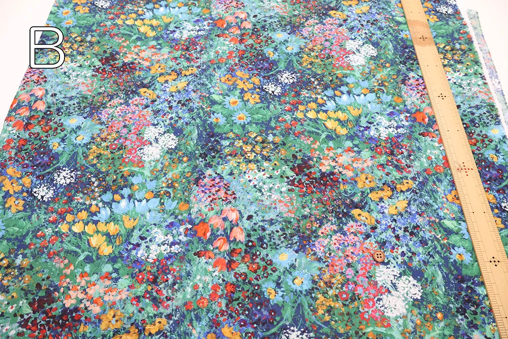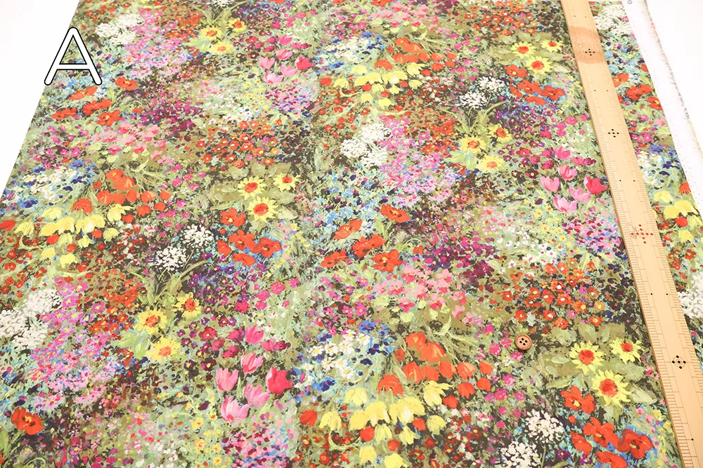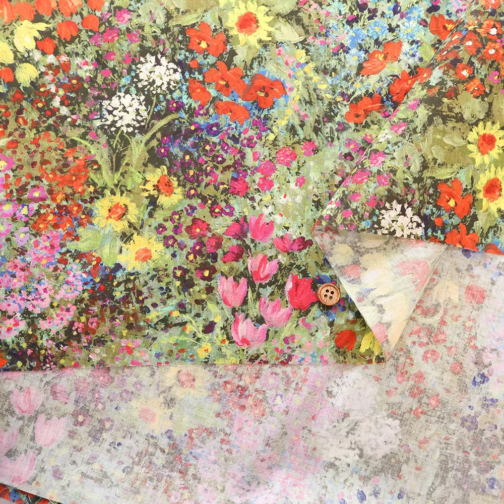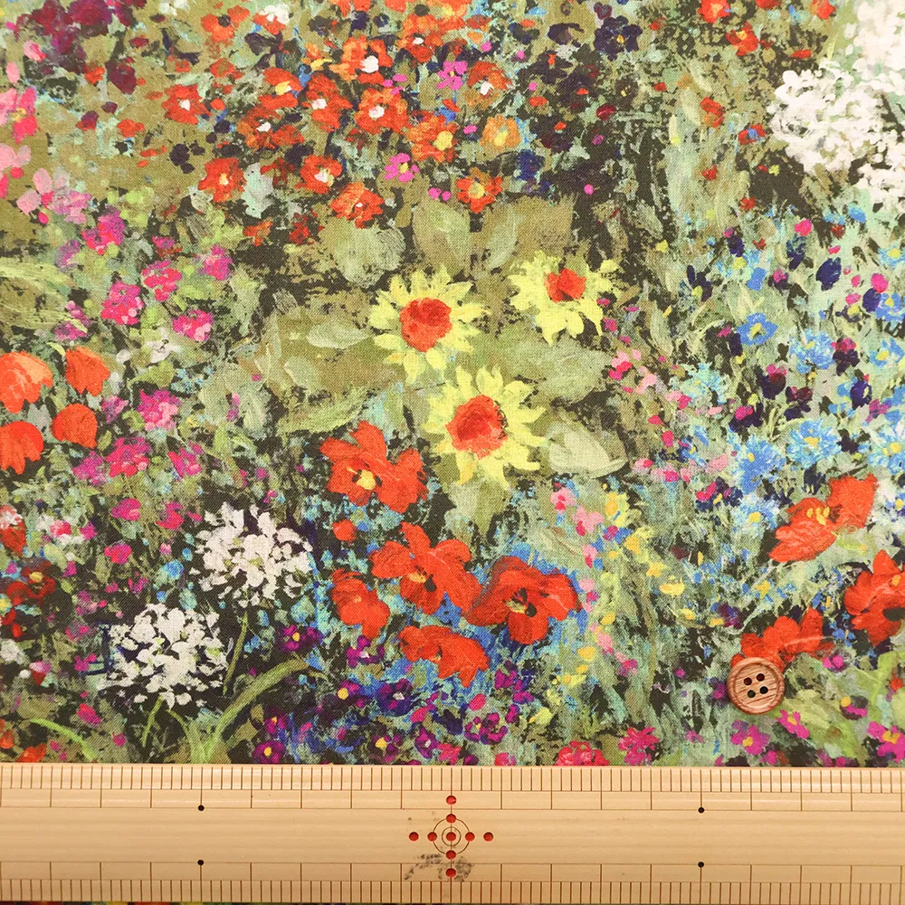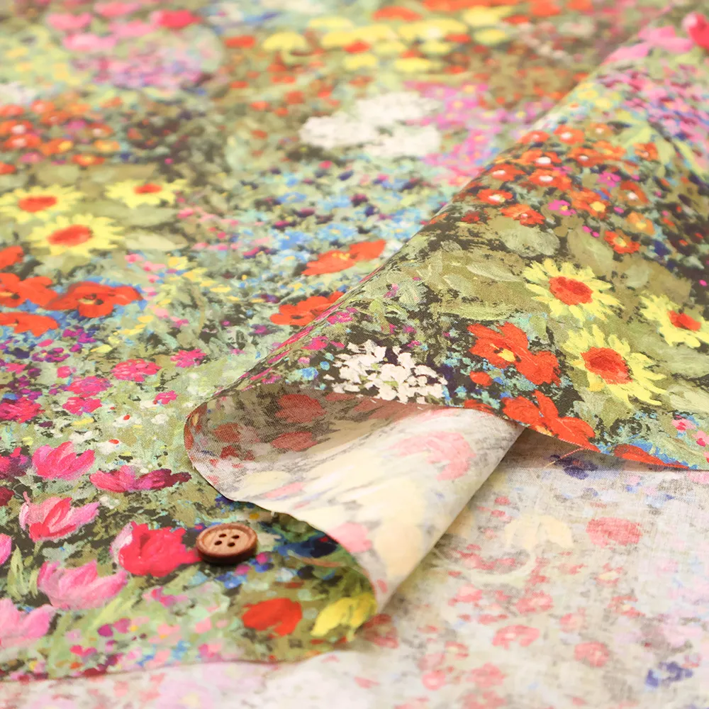 コットン60ローンインクジェットプリント生地 油絵風フラワー