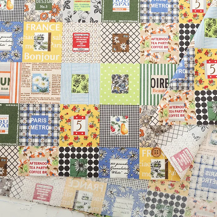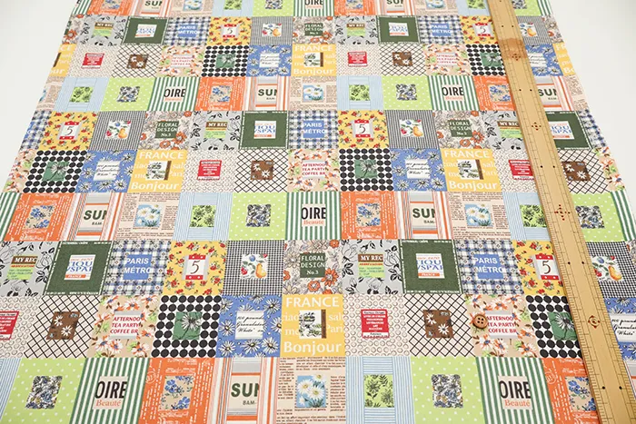 チンツ加工 コットンシャーティングプリント生地 小関鈴子 パッチワーク風