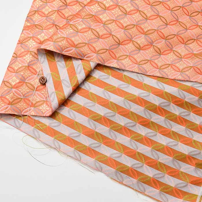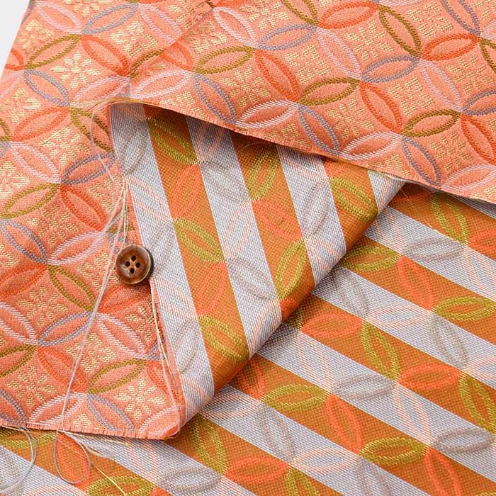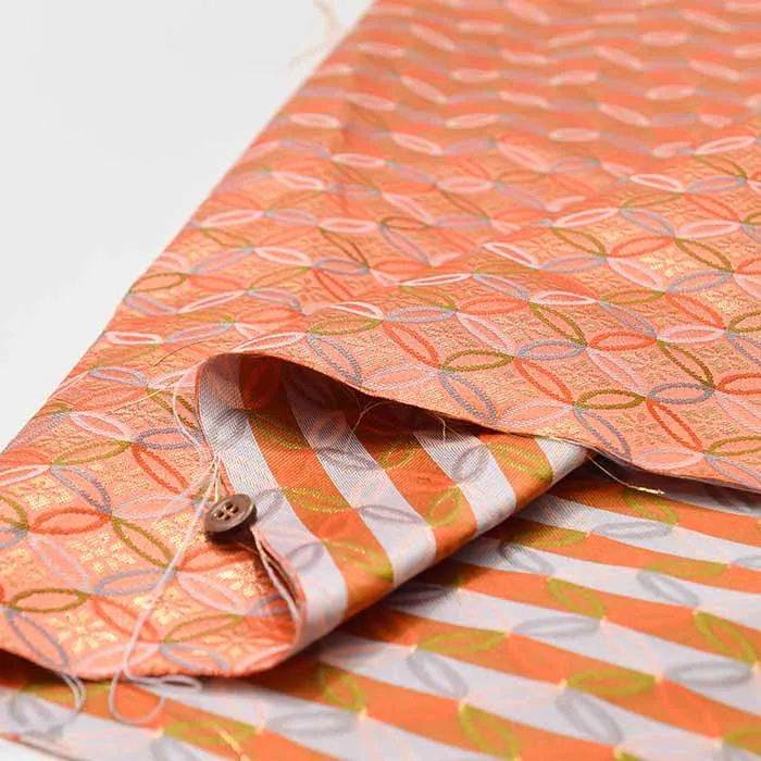 金糸や銀糸に色糸を交えて緯糸にし、紋様が浮き上がるように織った紋織物のひとつです。