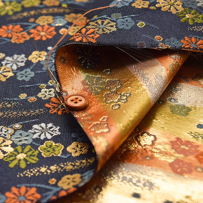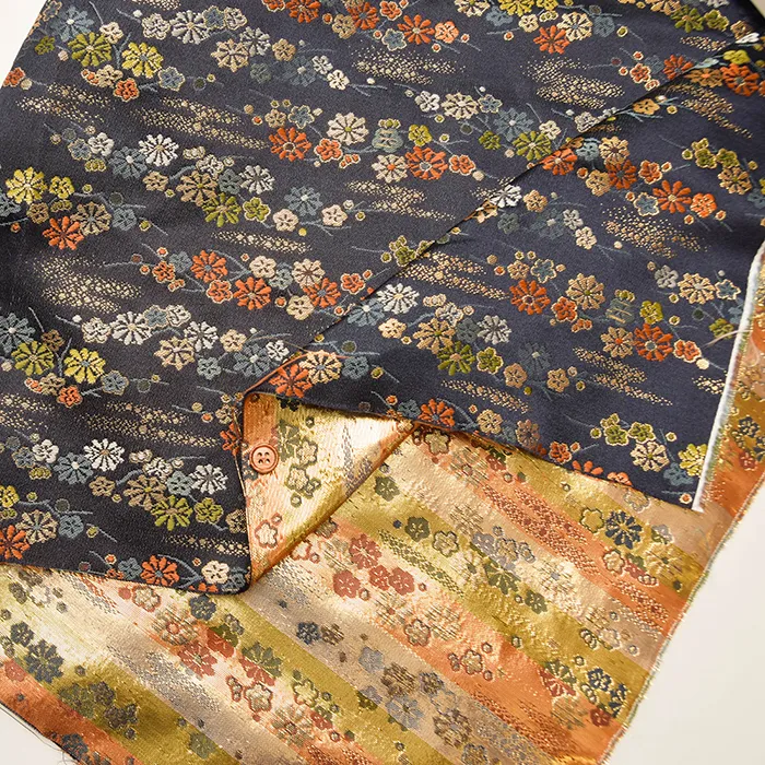 金糸や銀糸に色糸を交えて緯糸にし、紋様が浮き上がるように織った紋織物のひとつです。