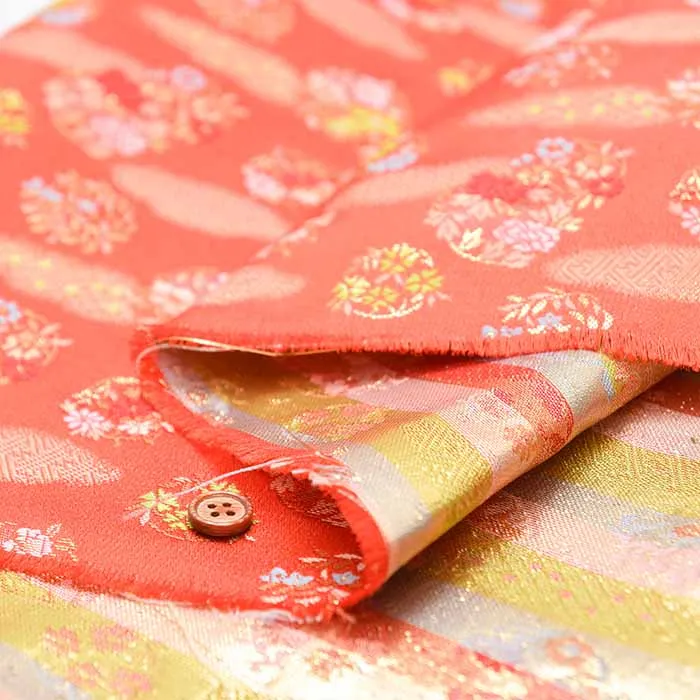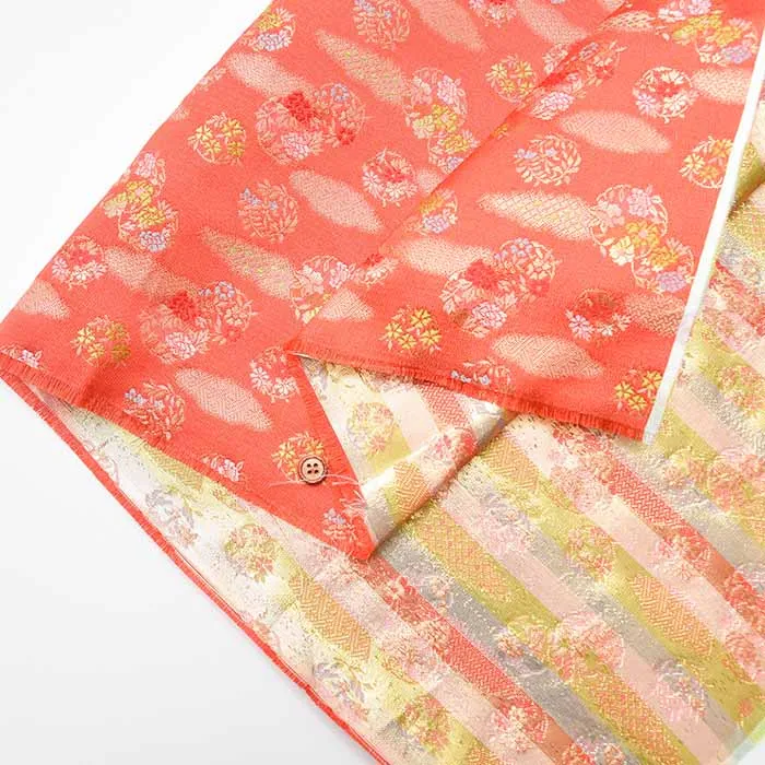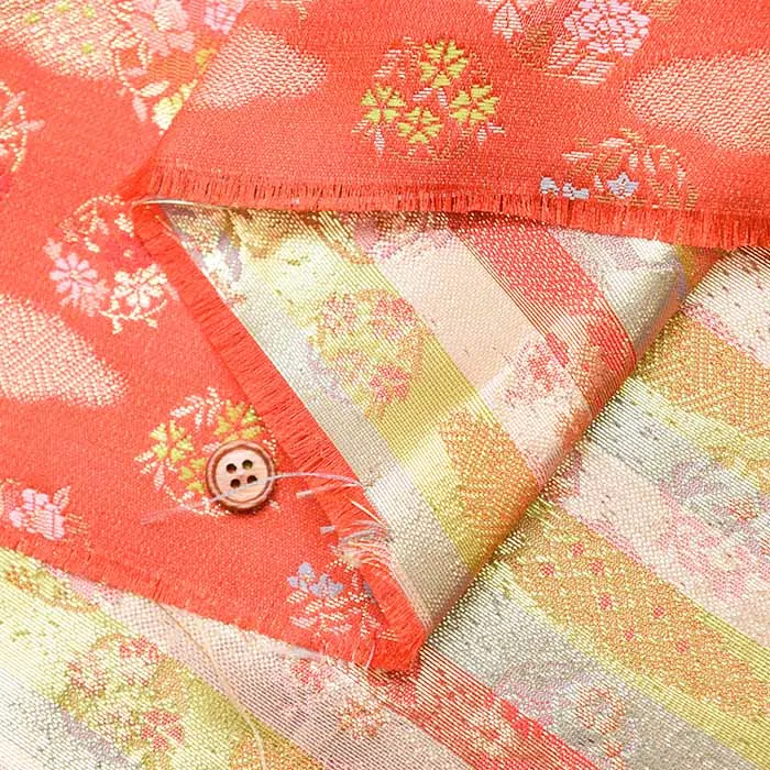 金糸や銀糸に色糸を交えて緯糸にし、紋様が浮き上がるように織った紋織物のひとつです。