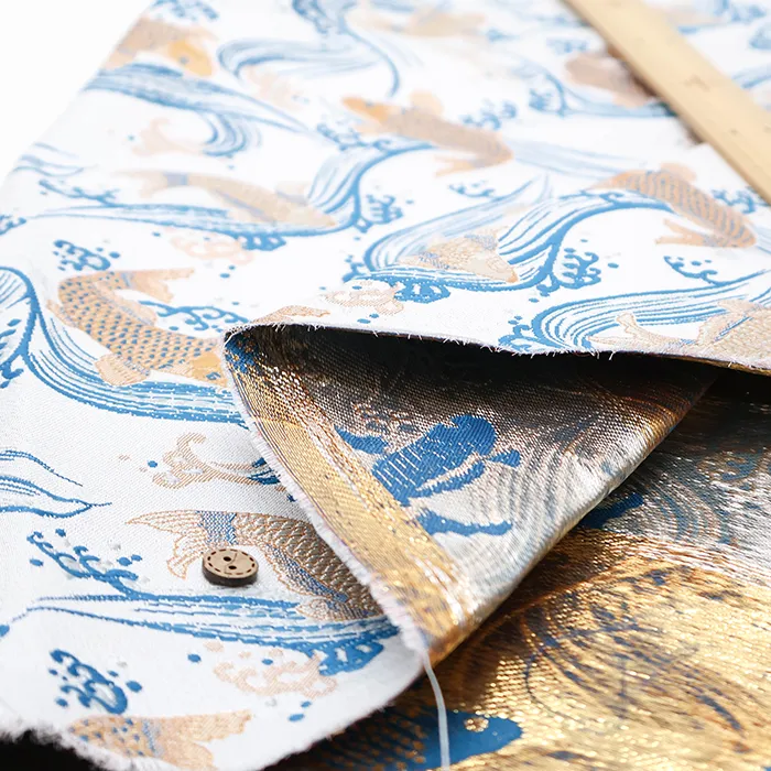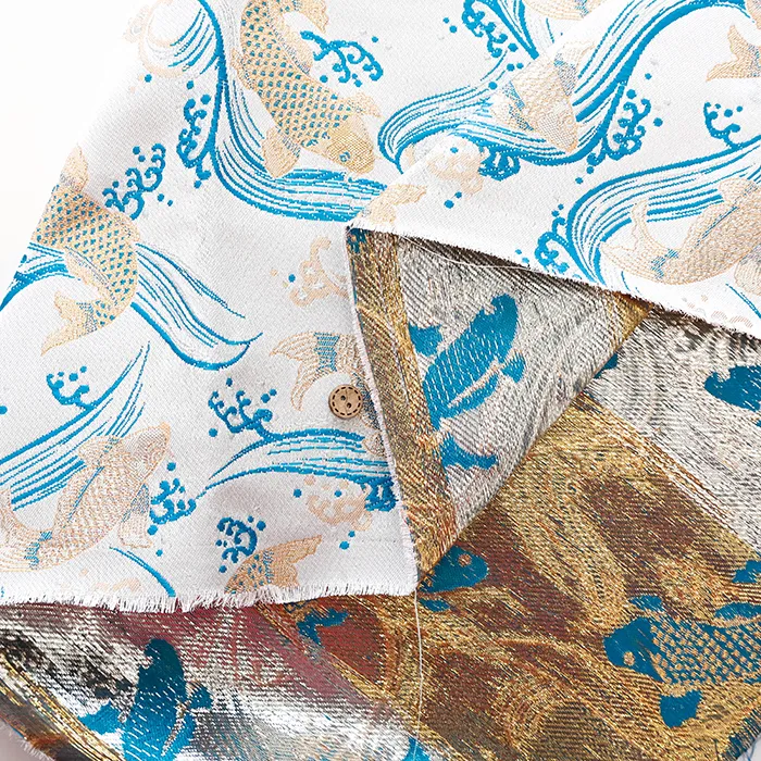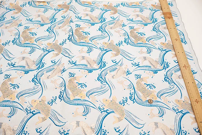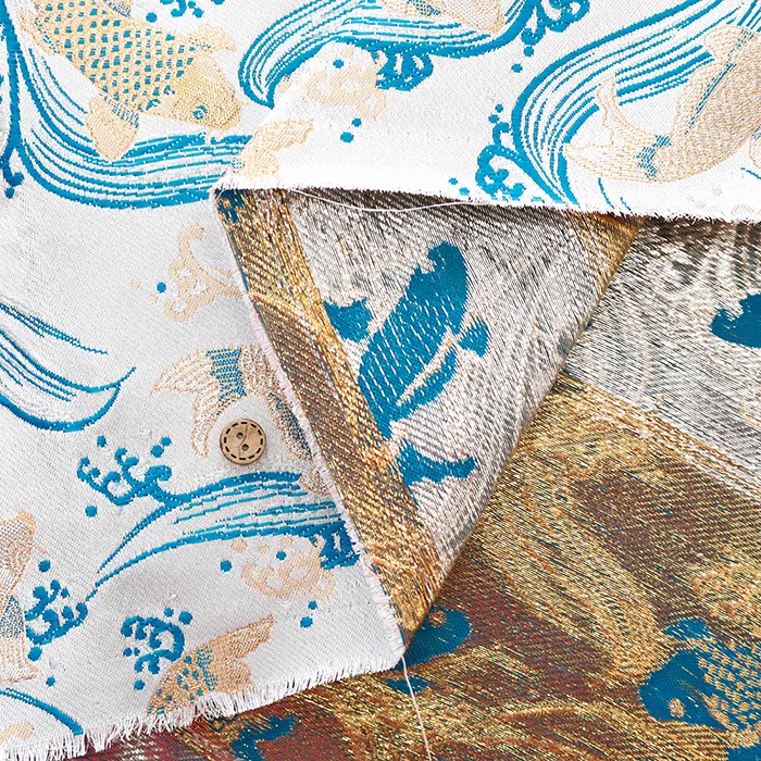 金糸や銀糸に色糸を交えて緯糸にし、紋様が浮き上がるように織った紋織物のひとつです。