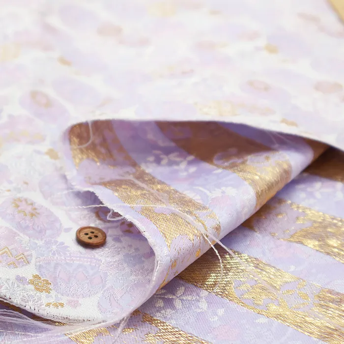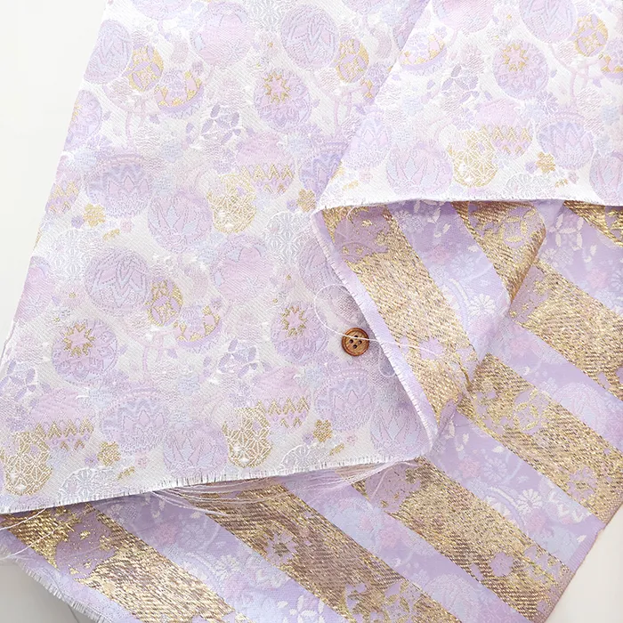 金糸や銀糸に色糸を交えて緯糸にし、紋様が浮き上がるように織った紋織物のひとつです。