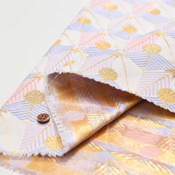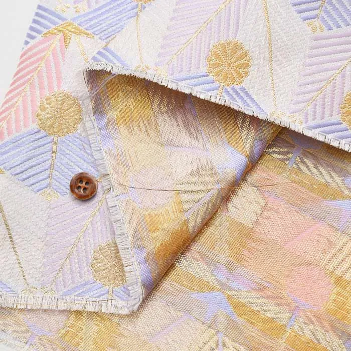 金糸や銀糸に色糸を交えて緯糸にし、紋様が浮き上がるように織った紋織物のひとつです。