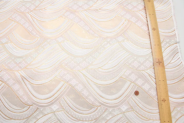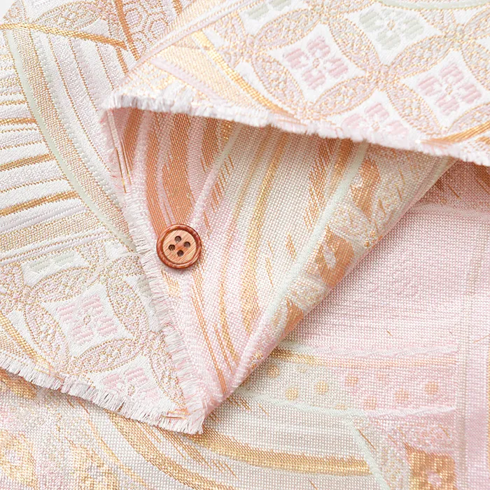 金糸や銀糸に色糸を交えて緯糸にし、紋様が浮き上がるように織った紋織物のひとつです。