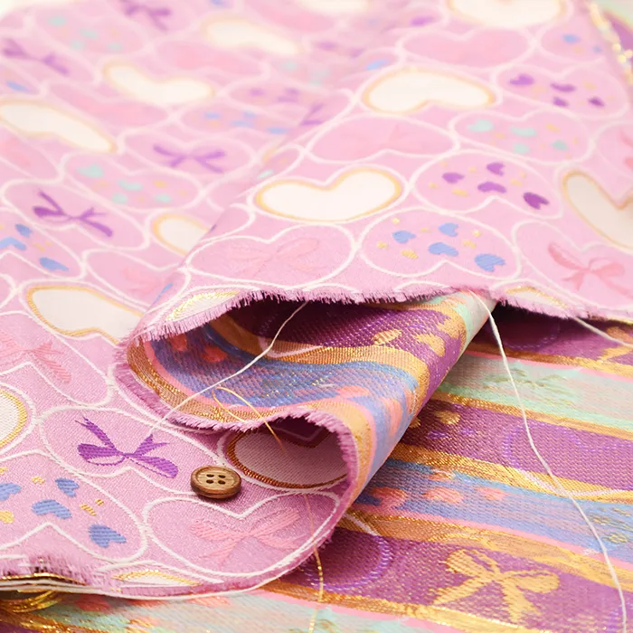 金糸や銀糸に色糸を交えて緯糸にし、紋様が浮き上がるように織った紋織物のひとつです。