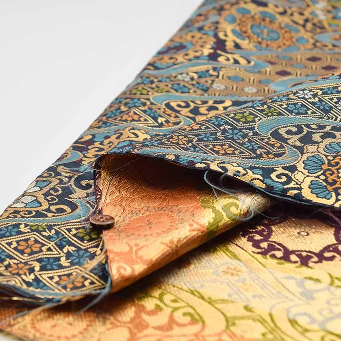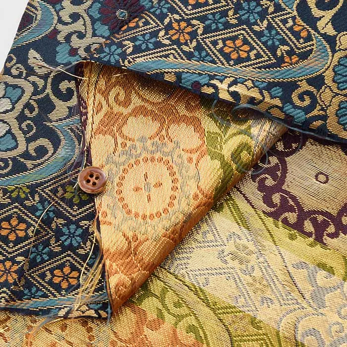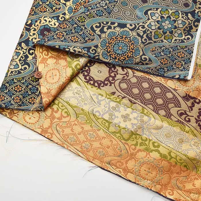 金糸や銀糸に色糸を交えて緯糸にし、紋様が浮き上がるように織った紋織物のひとつです。