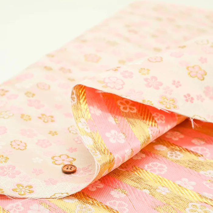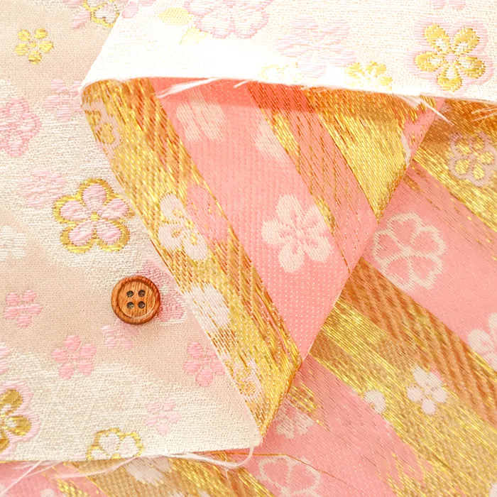 金糸や銀糸に色糸を交えて緯糸にし、紋様が浮き上がるように織った紋織物のひとつです。