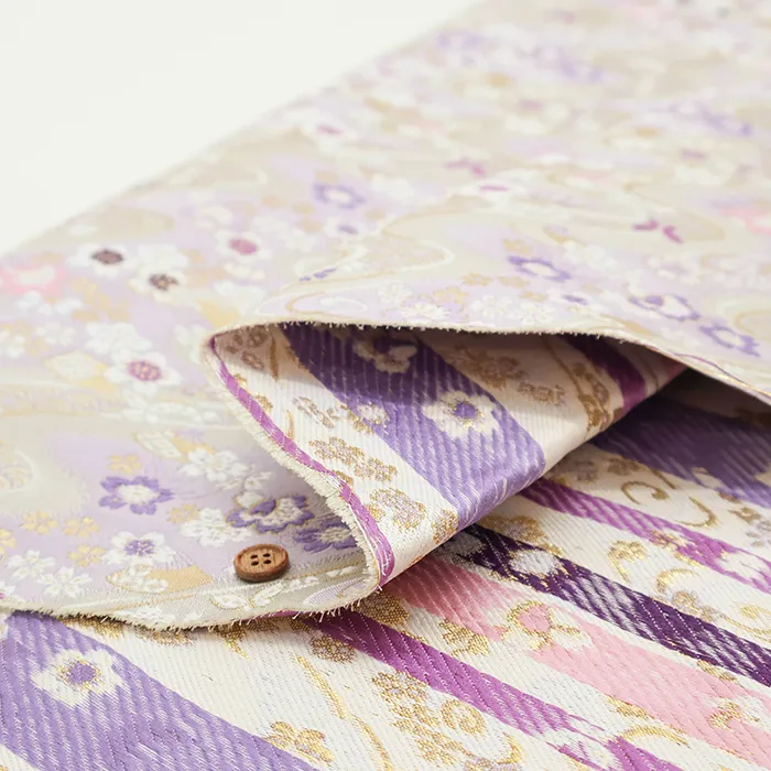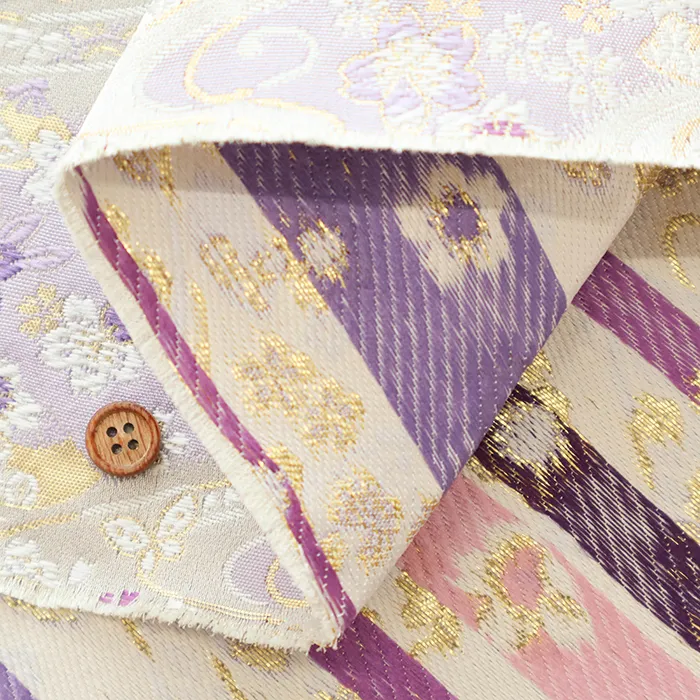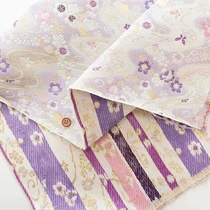 金糸や銀糸に色糸を交えて緯糸にし、紋様が浮き上がるように織った紋織物のひとつです。