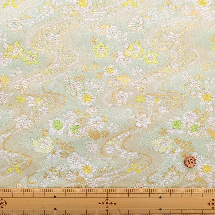 金糸や銀糸に色糸を交えて緯糸にし、紋様が浮き上がるように織った紋織物のひとつです。