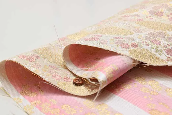 まるで着物の帯のような、京都らしい金糸使いの綺麗な金襴。