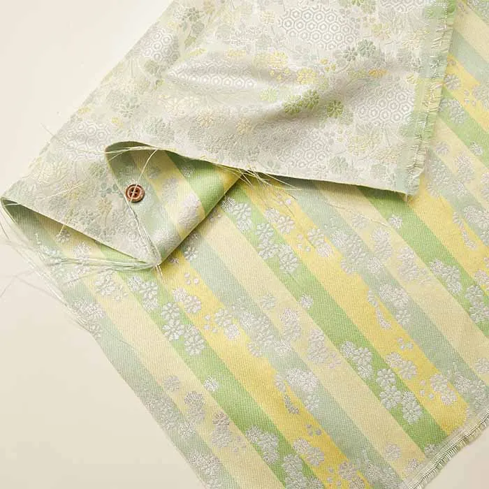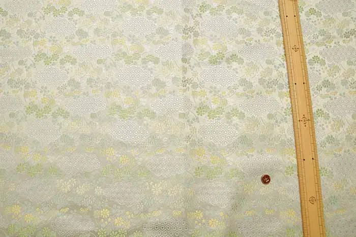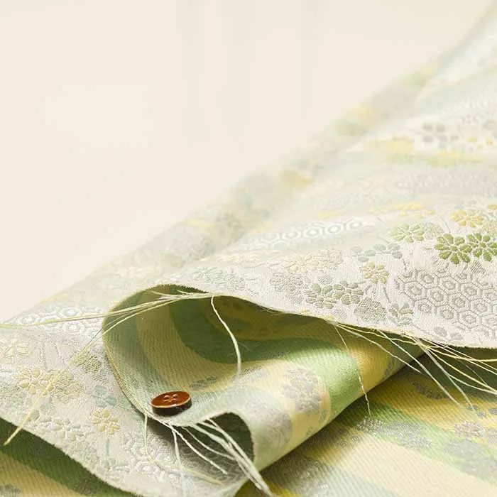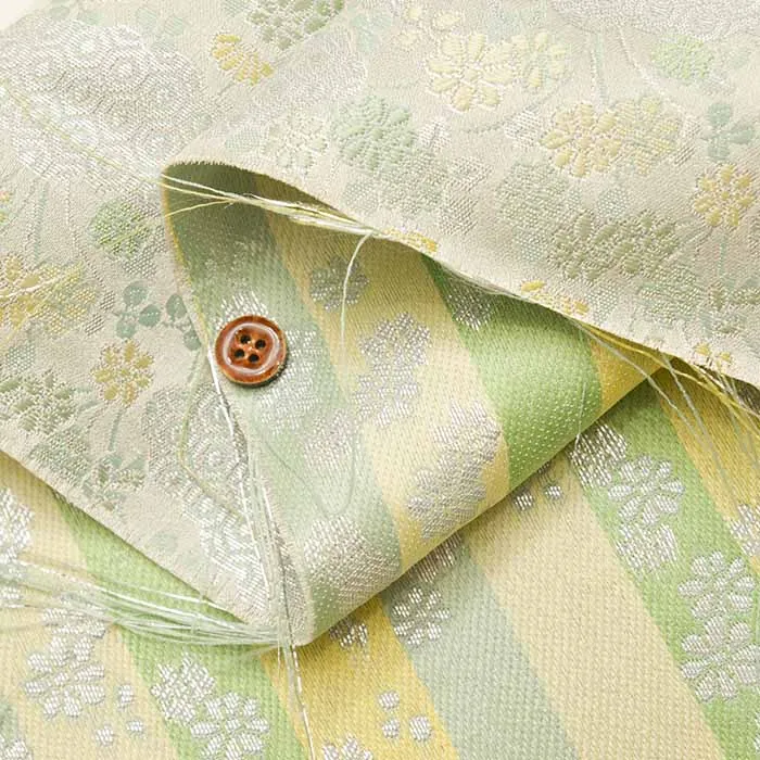 金糸や銀糸に色糸を交えて緯糸にし、紋様が浮き上がるように織った紋織物のひとつです。