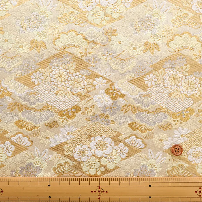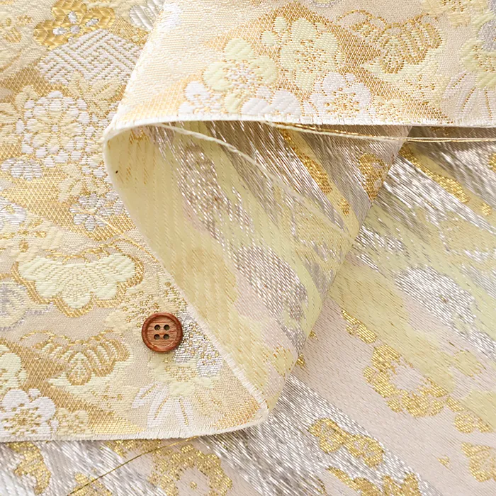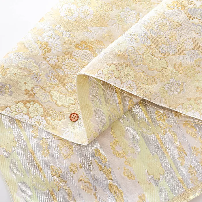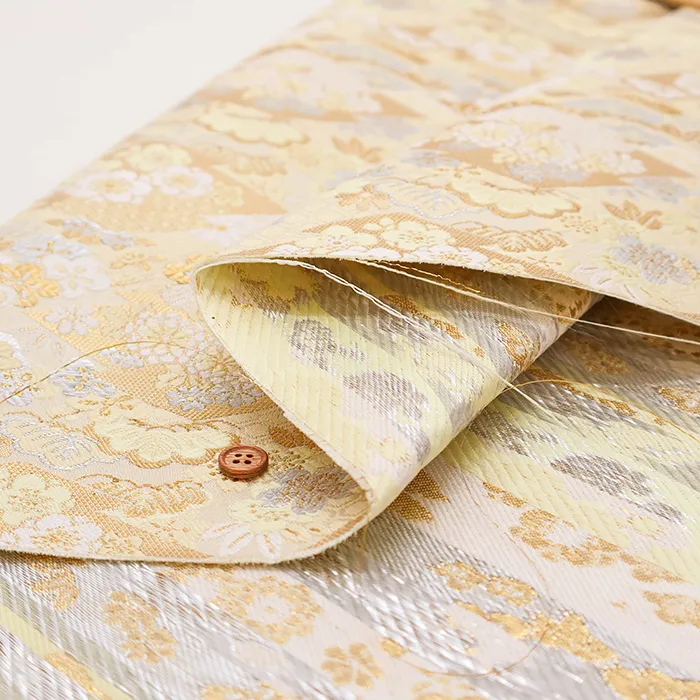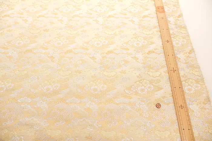 金糸や銀糸に色糸を交えて緯糸にし、紋様が浮き上がるように織った紋織物のひとつです。