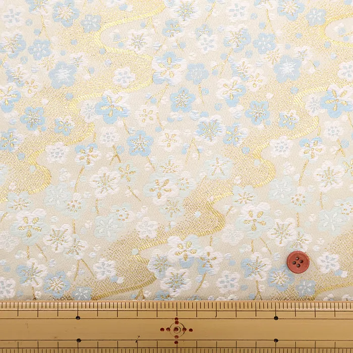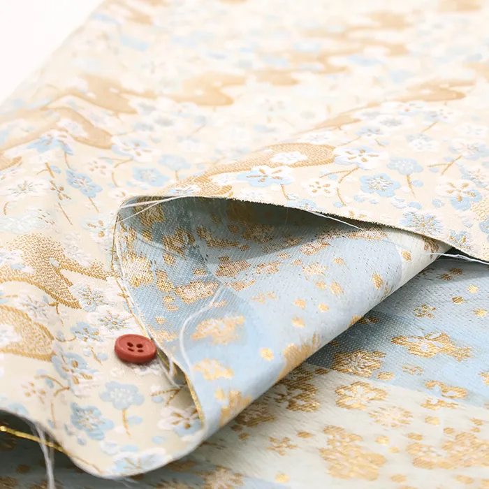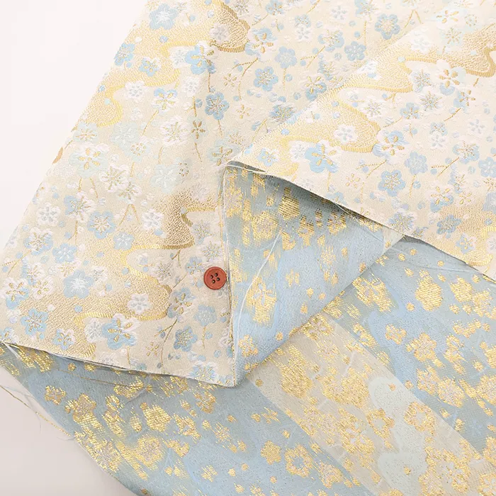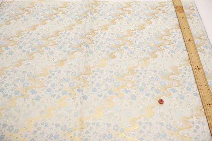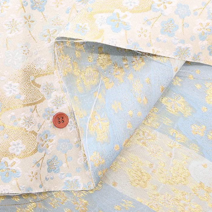 金糸や銀糸に色糸を交えて緯糸にし、紋様が浮き上がるように織った紋織物のひとつです。