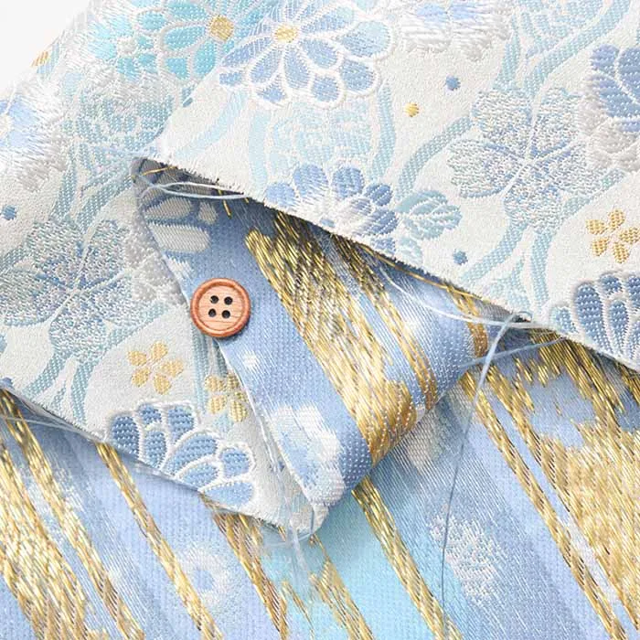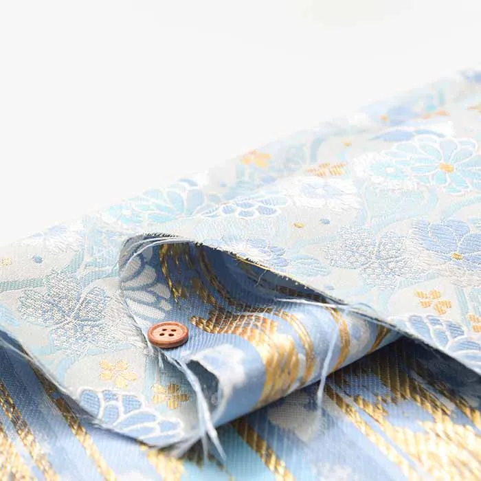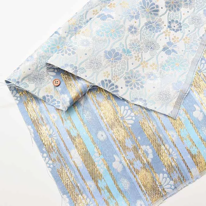 金糸や銀糸に色糸を交えて緯糸にし、紋様が浮き上がるように織った紋織物のひとつです。
