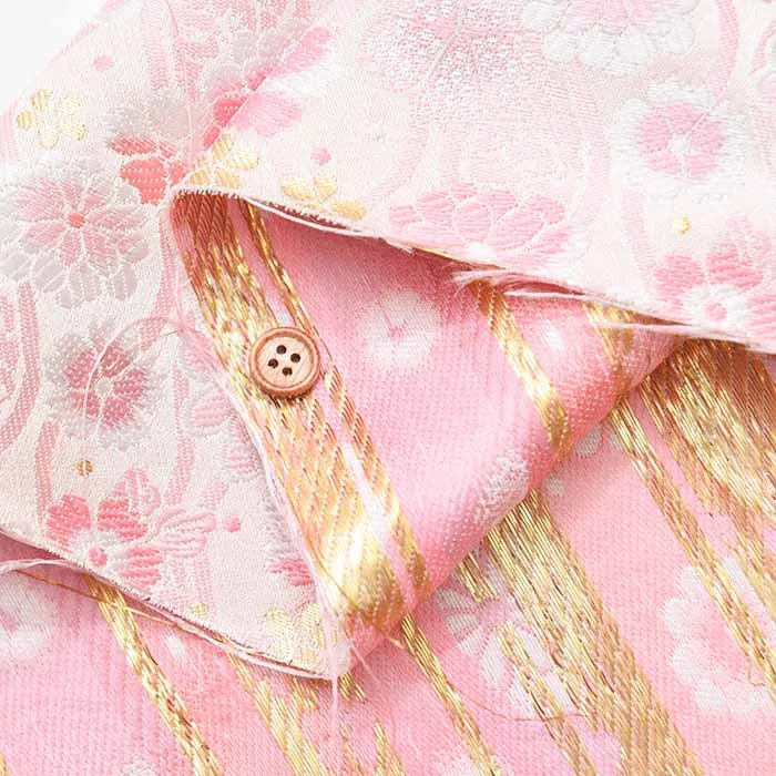 金糸や銀糸に色糸を交えて緯糸にし、紋様が浮き上がるように織った紋織物のひとつです。