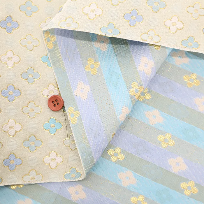 金糸や銀糸に色糸を交えて緯糸にし、紋様が浮き上がるように織った紋織物のひとつです。